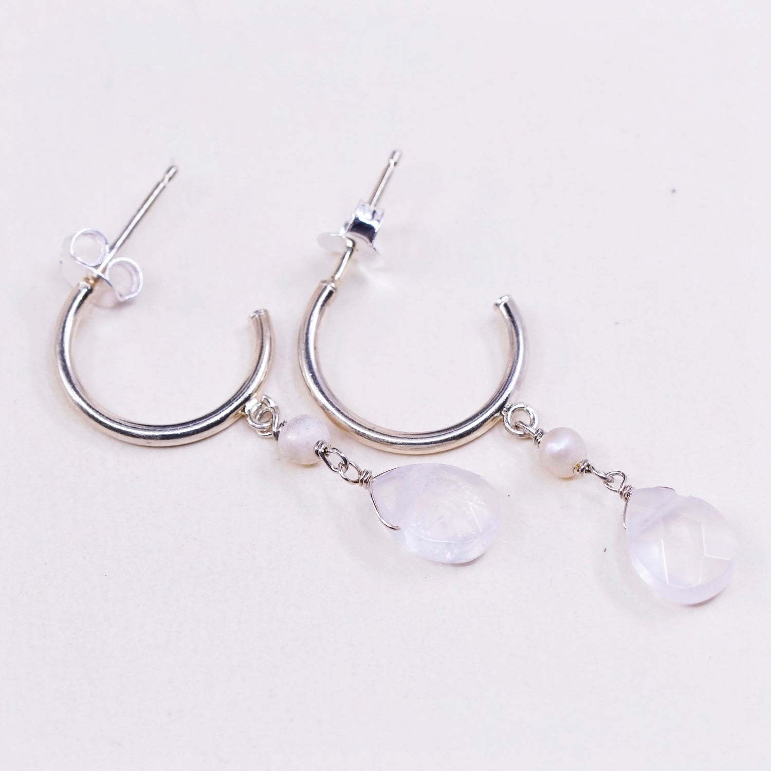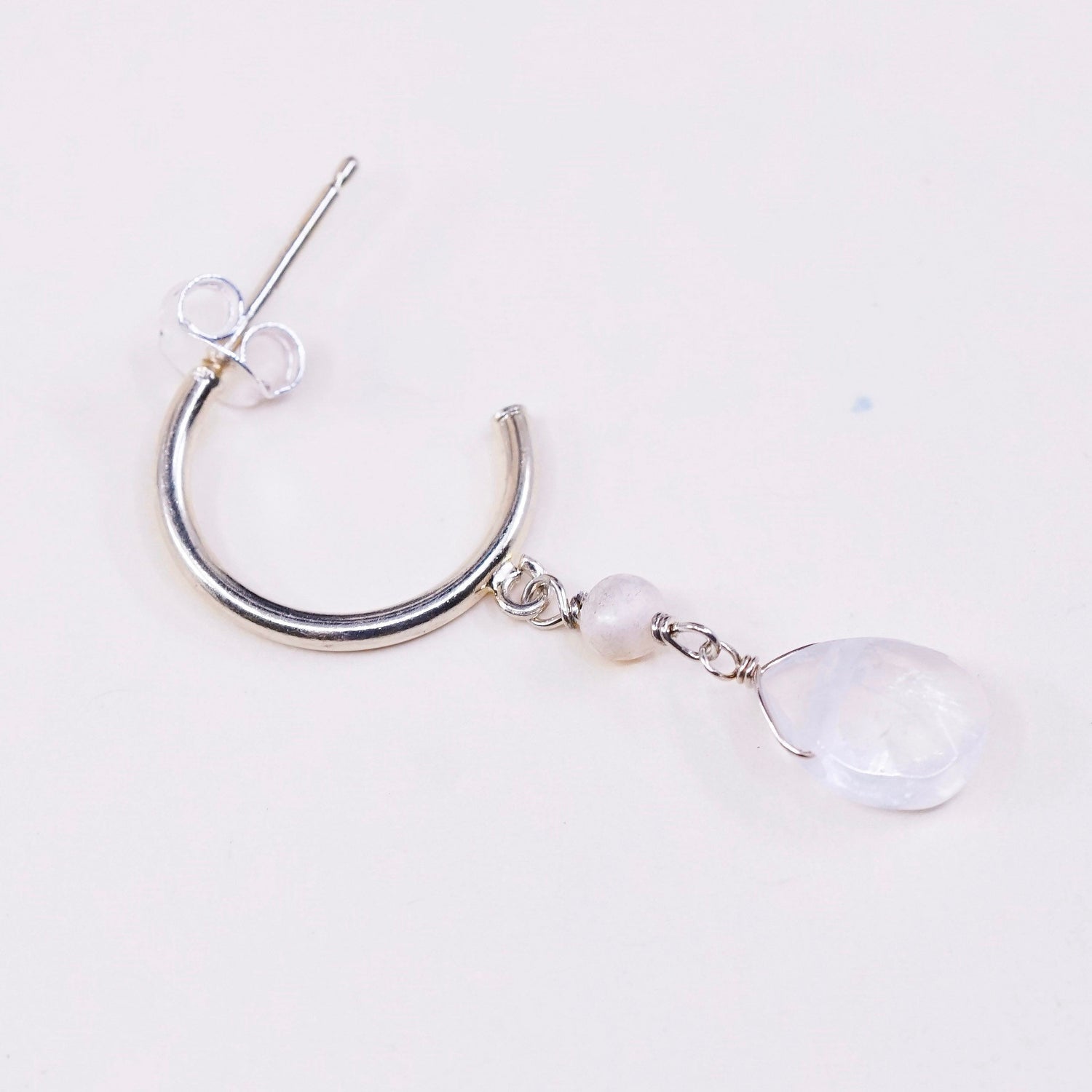 0.5", Vintage light gold sterling silver loop earrings, fashion minimalist primitive hoops, stamped 925