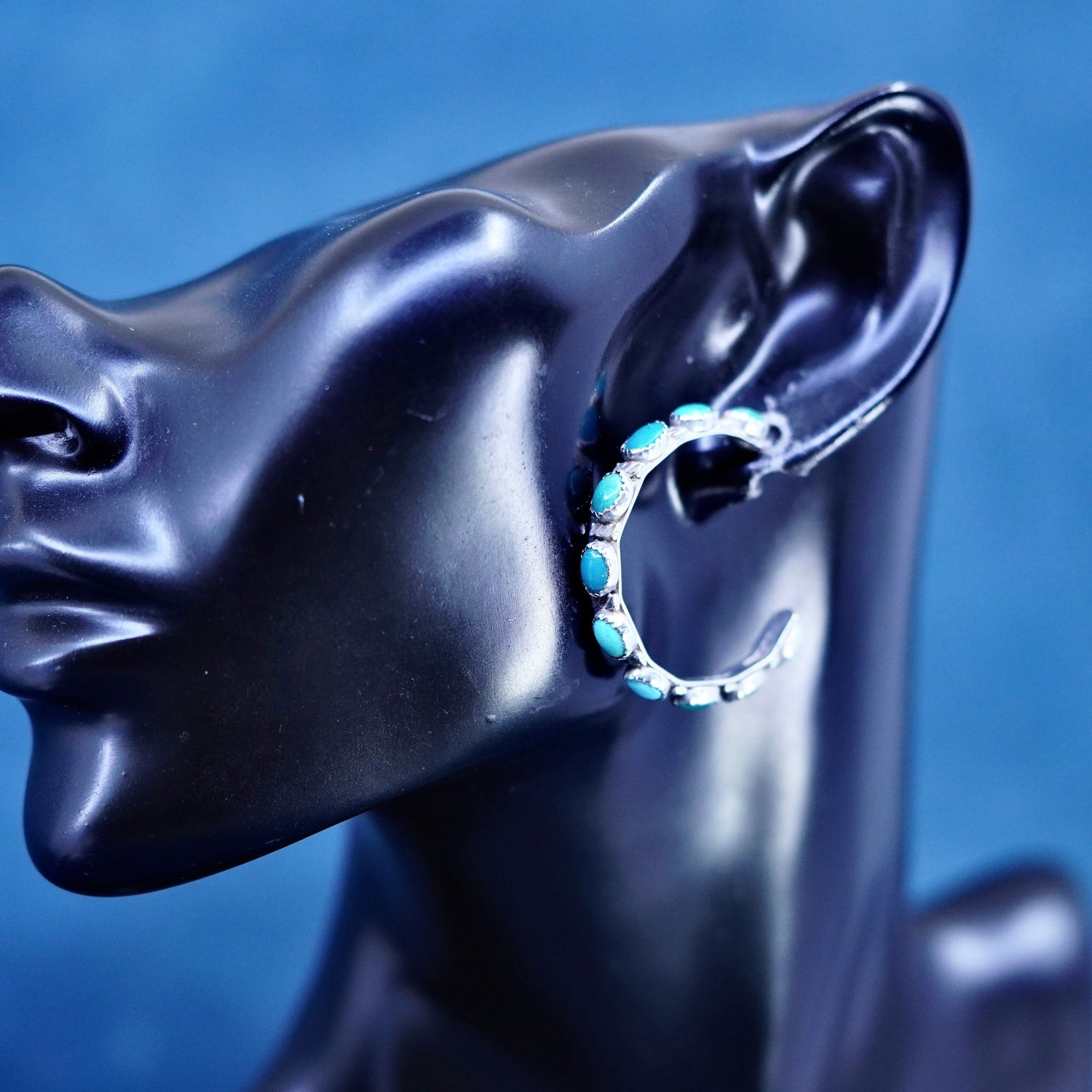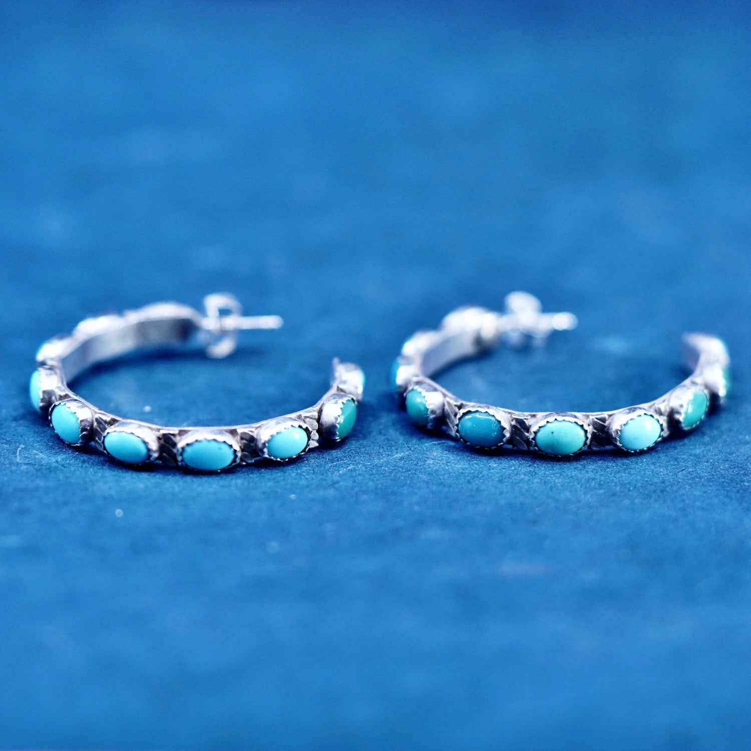 1.5", vintage Native American Ernest Rangel Sterling silver 925 earrings with turquoise inlay, stamped sterling 925