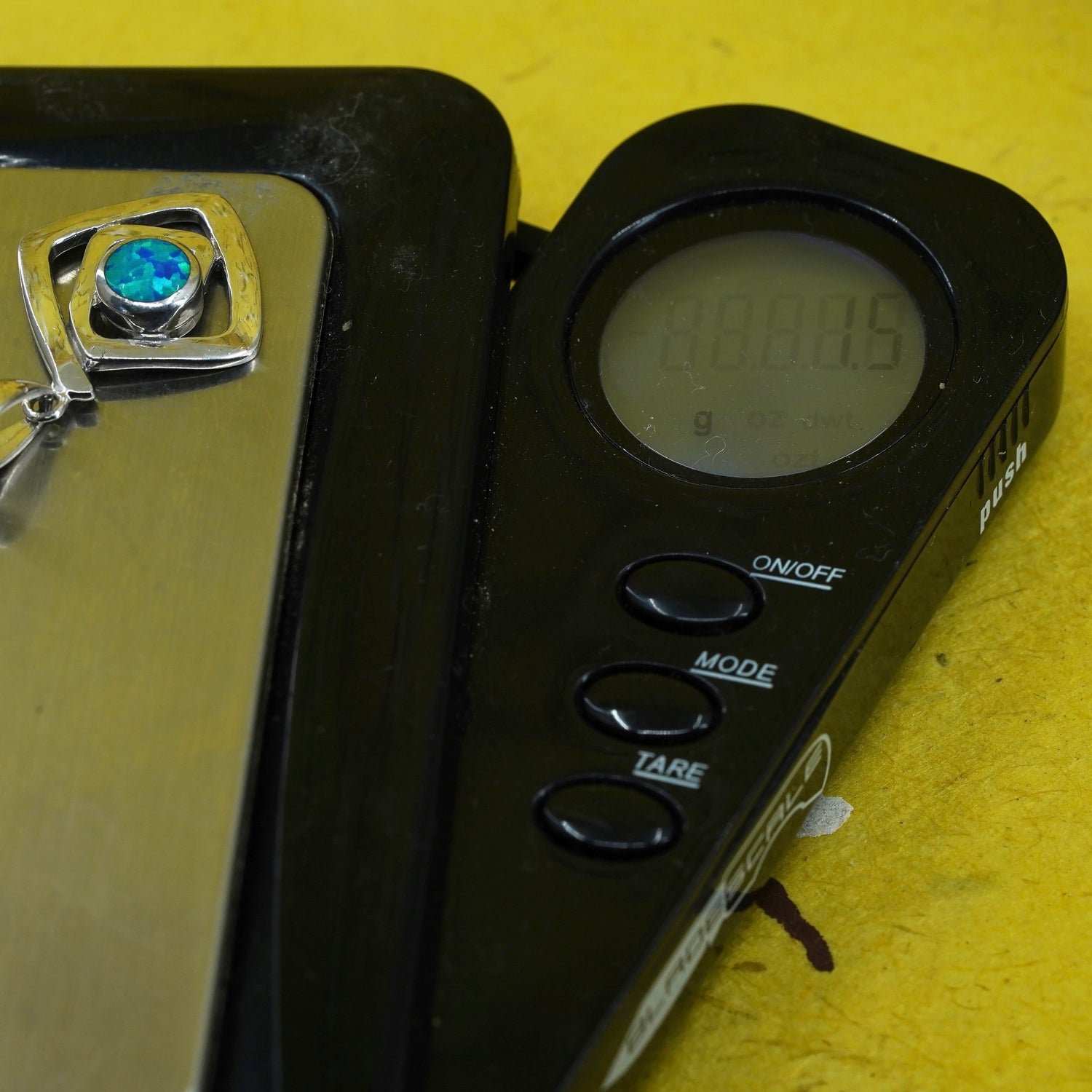 1.5g, vintage 9K white gold square pendant with Opal inlay, stamped 9K
