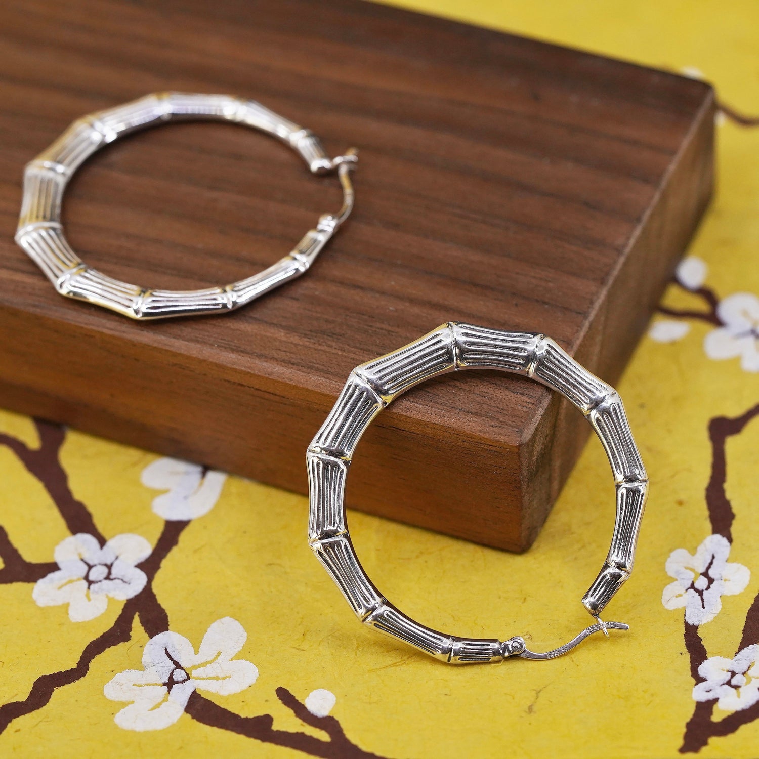 1.75”, Vintage Sterling silver handmade earrings, 925 bamboo textured hoops