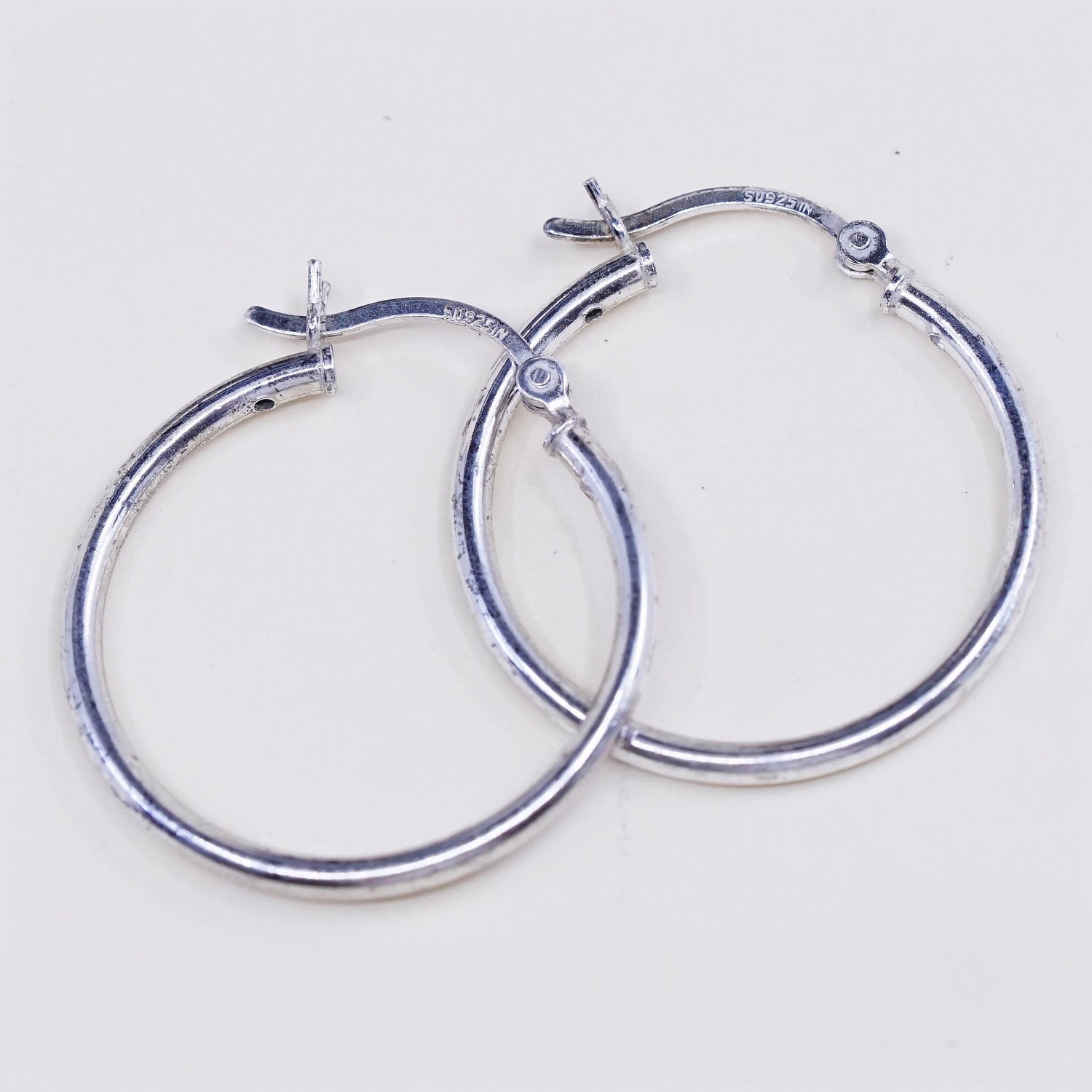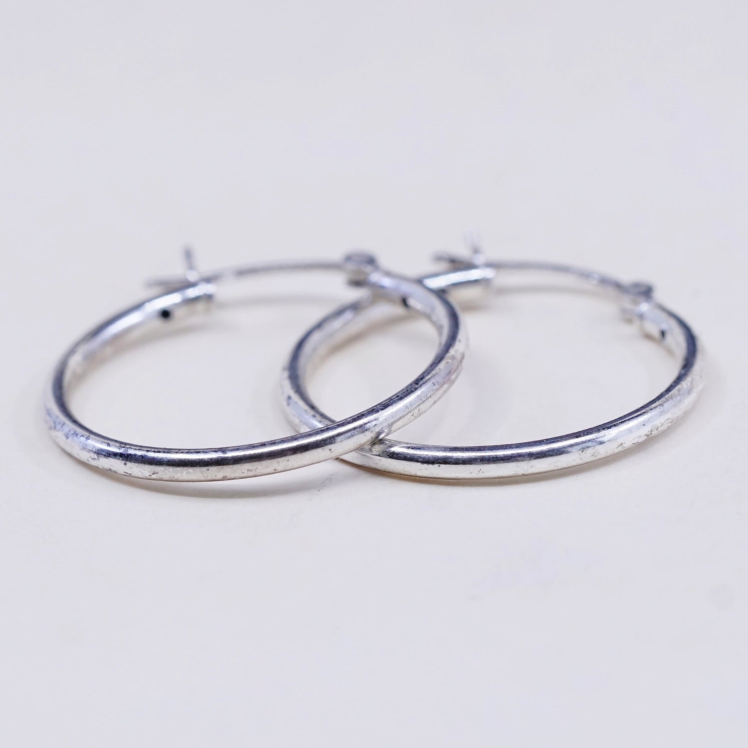 1”, Vintage sterling silver loop earrings, fashion minimalist primitive hoops