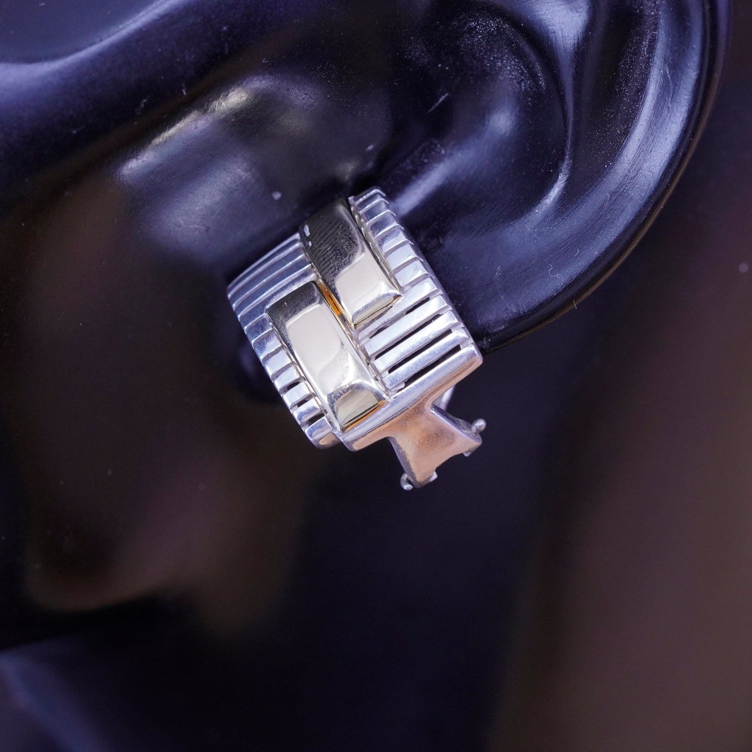 1", vintage WR 18K gold accent with sterling silver handmade earrings, modern 925 studs, stamped 925 18K WR