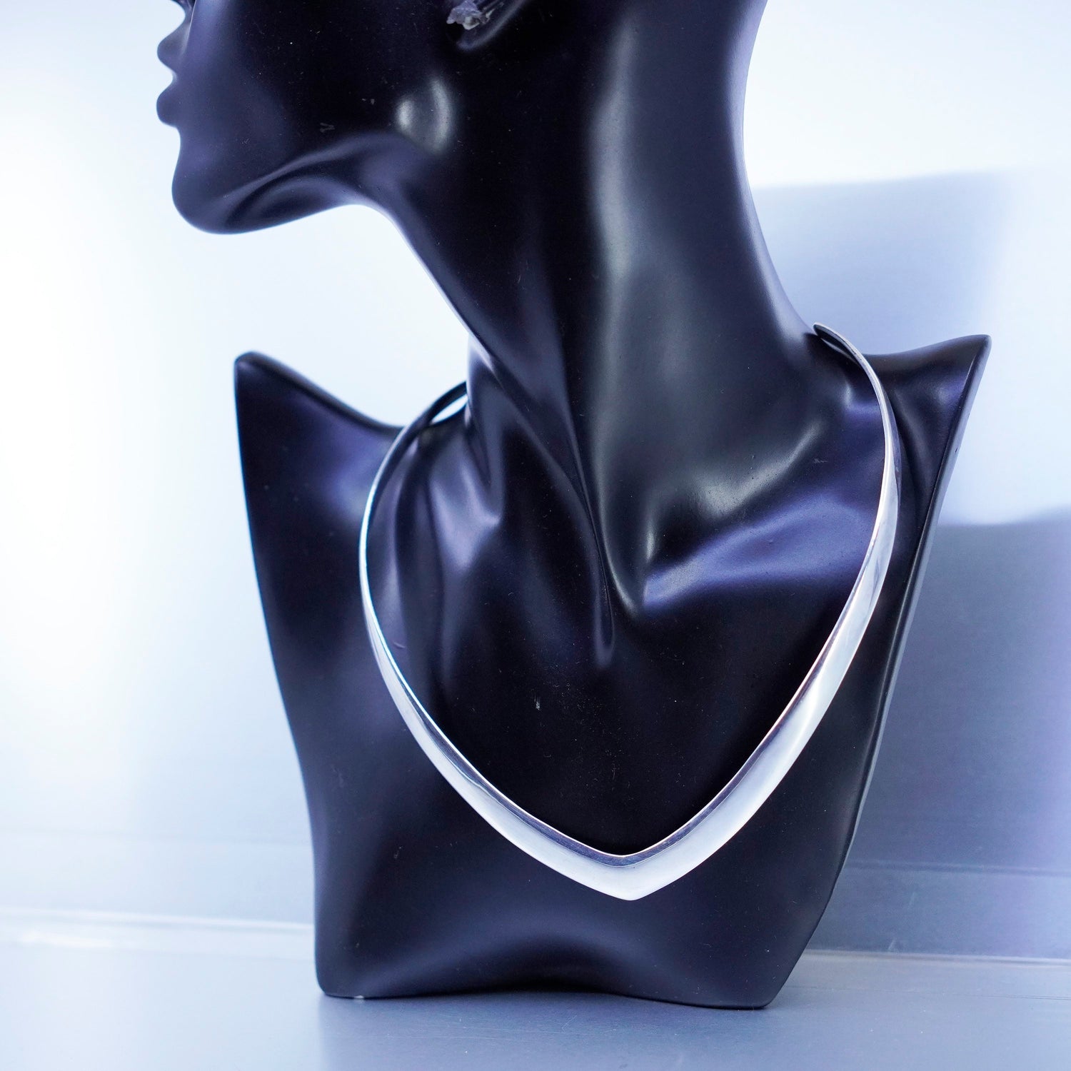 14”, vintage Mexico Sterling 925 silver handmade wide V choker collar necklace