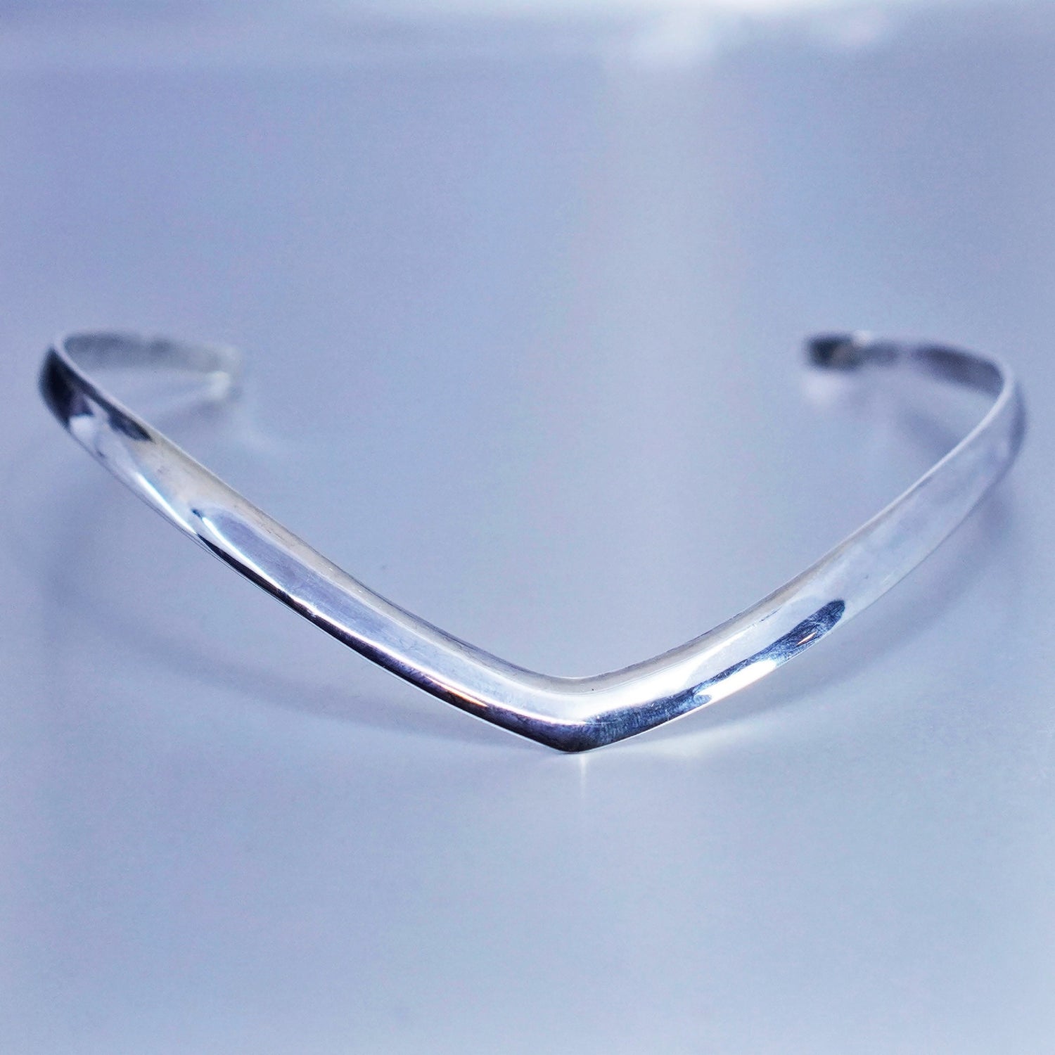 14", vintage Mexico Sterling 925 silver handmade wide V shaped choker collar necklace , stamped 925 TB-26 Mexico