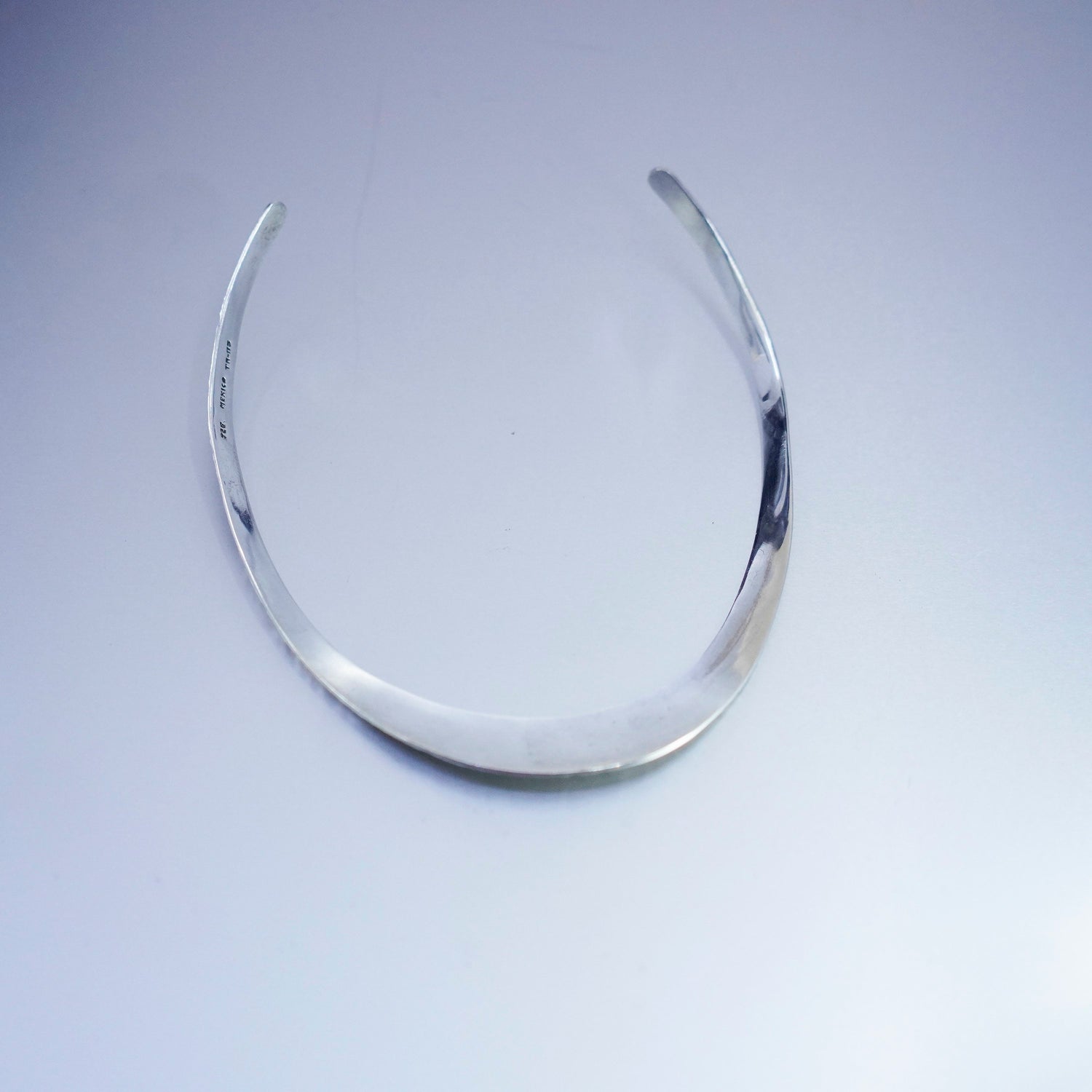 14", vintage Sterling 925 silver handmade hammered choker collar necklace , stamped Mexico 925 TM-115
