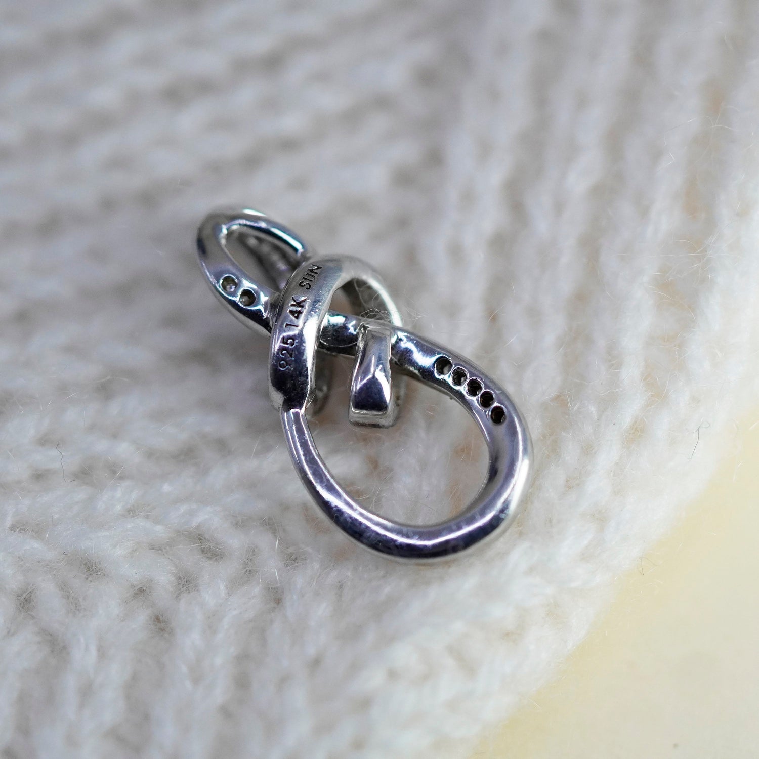 14K gold with Sterling silver Teardrop, entwined 925 Pendant with real diamonds