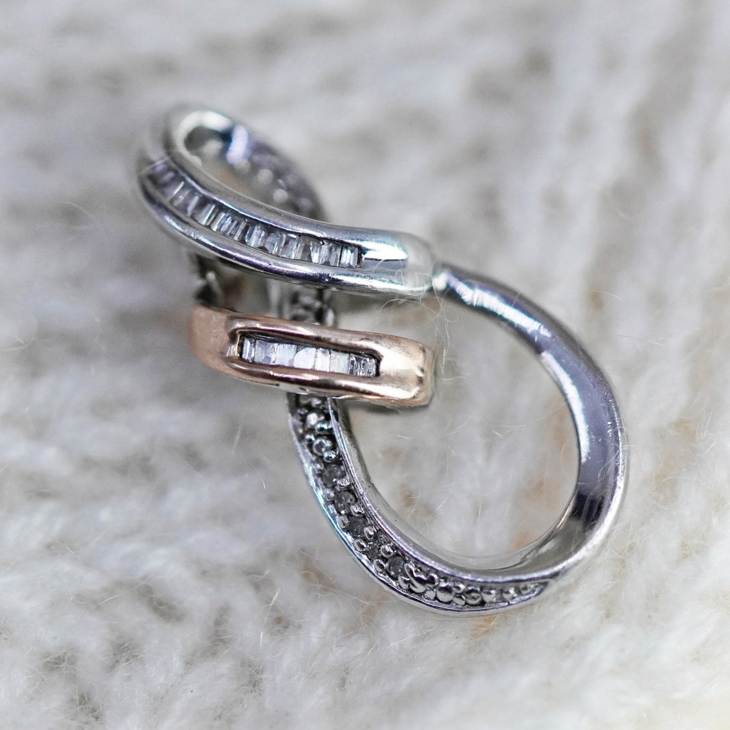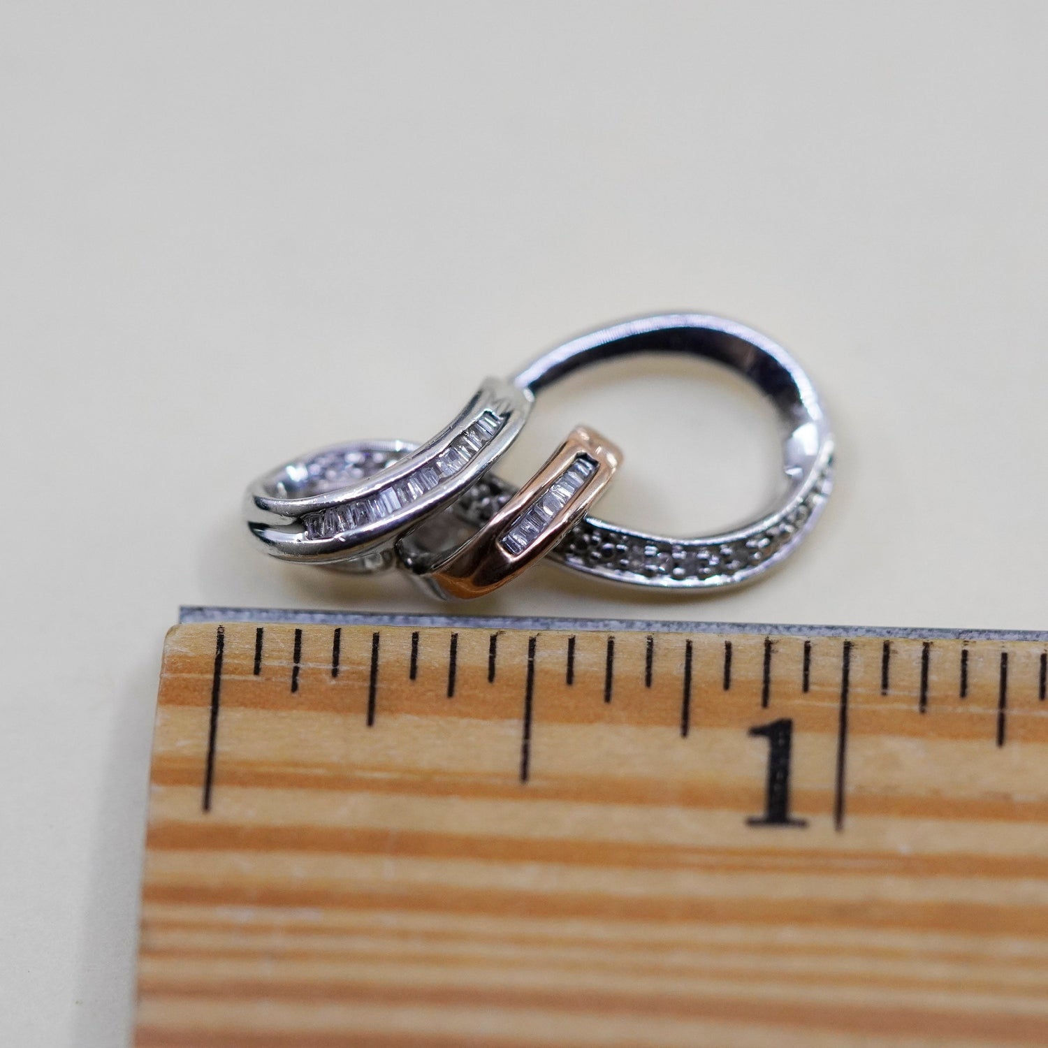 vintage 14K gold with Sterling silver Teardrop, entwined 925 Pendant with real diamonds, stamped 925 14K Sun