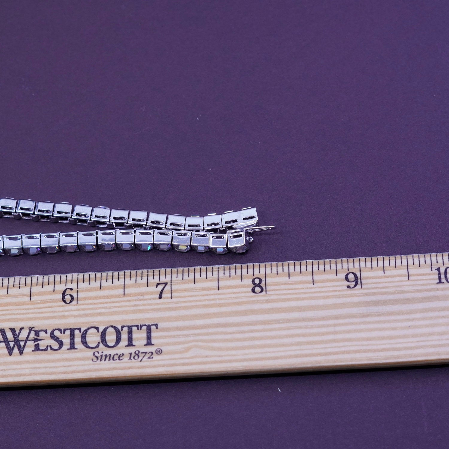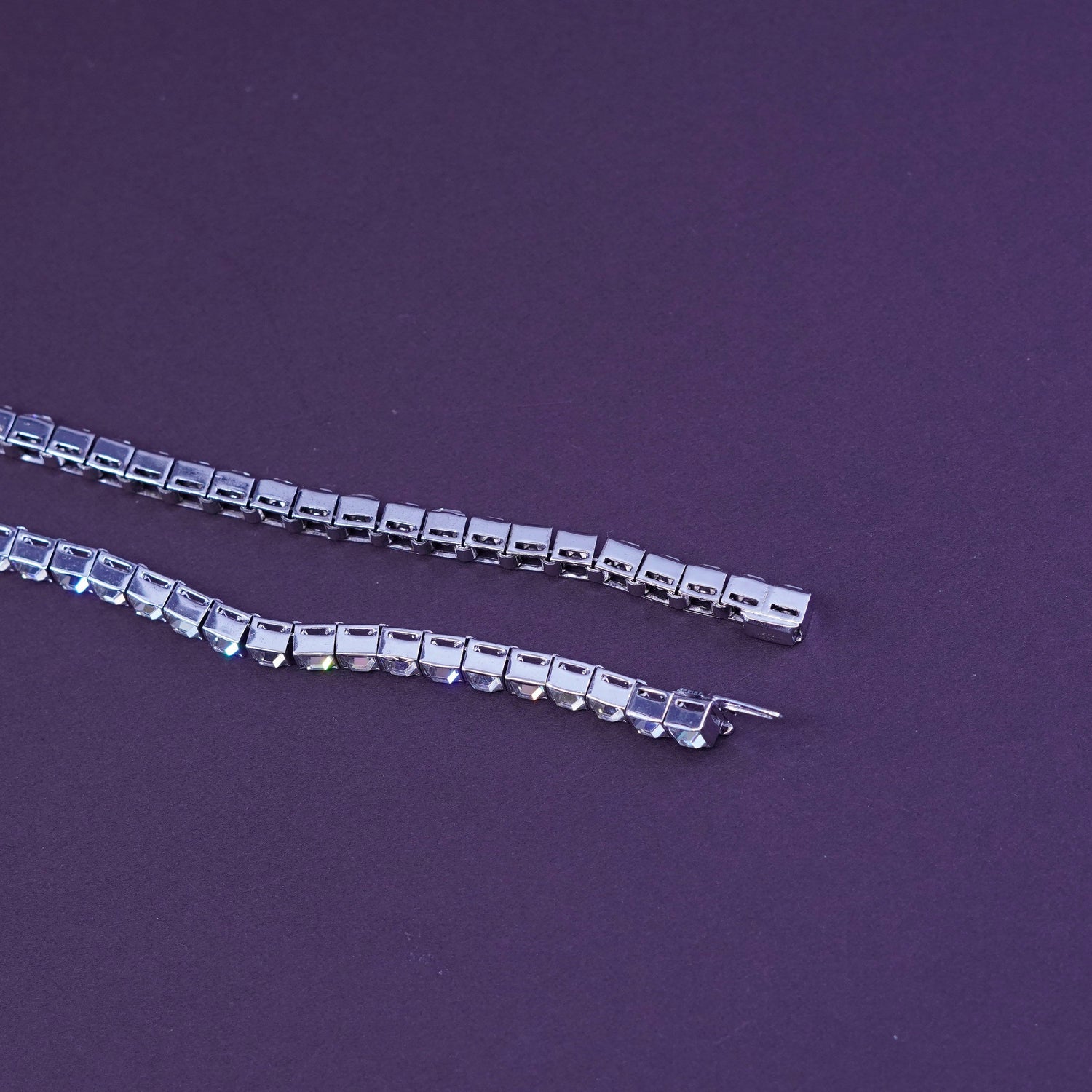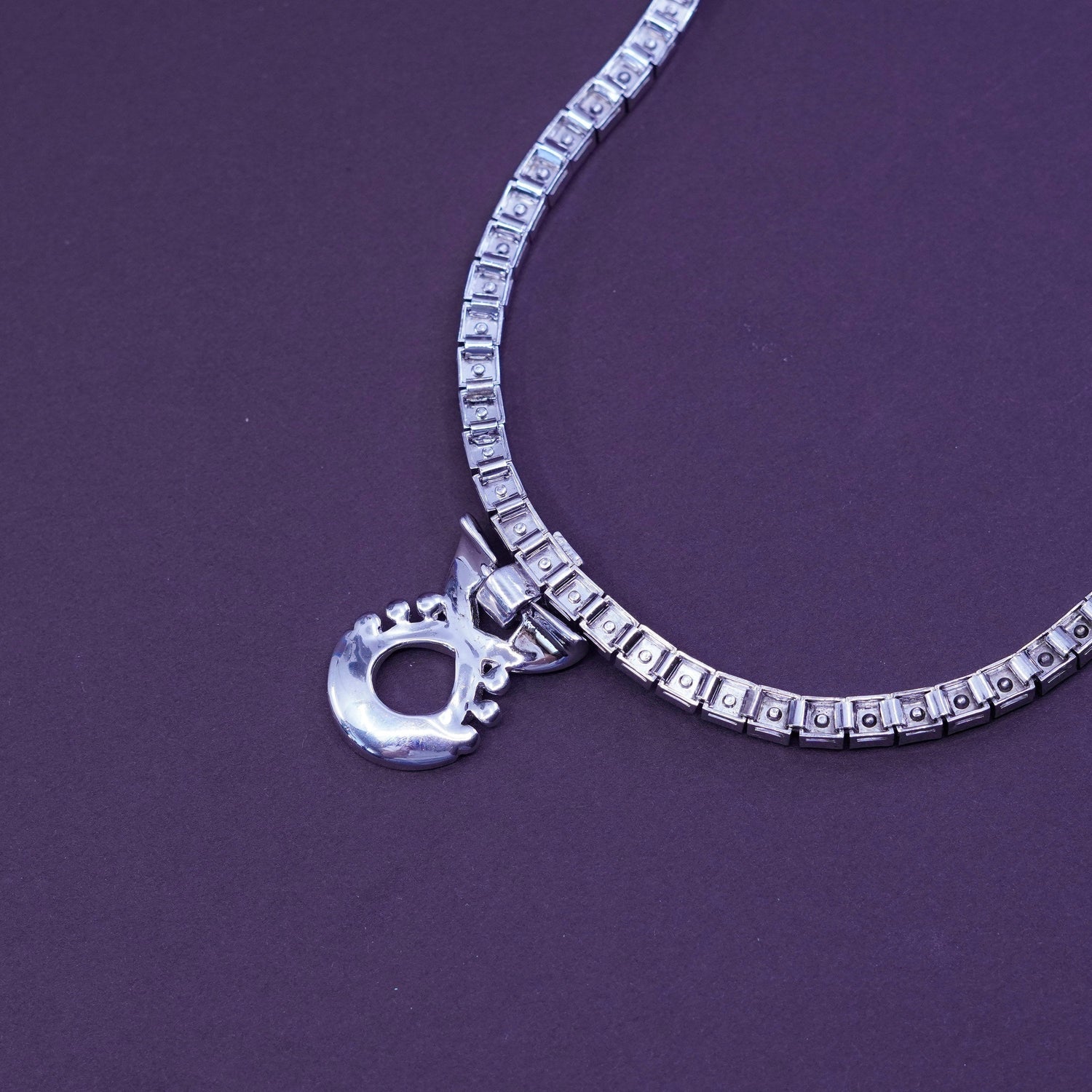 15", 1947 DORSONS Jubilee Sterling 925 silver Clear Rhinestone infinity loop Pendant Choker necklace, stamped Dorsons Sterling