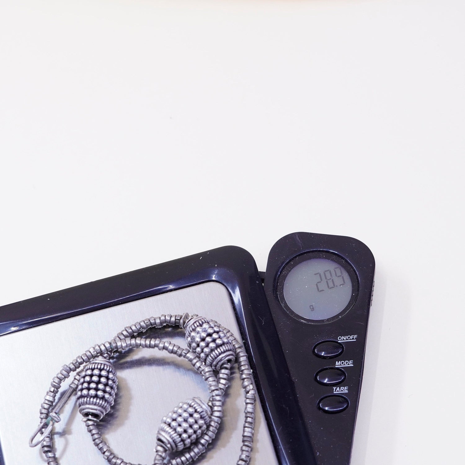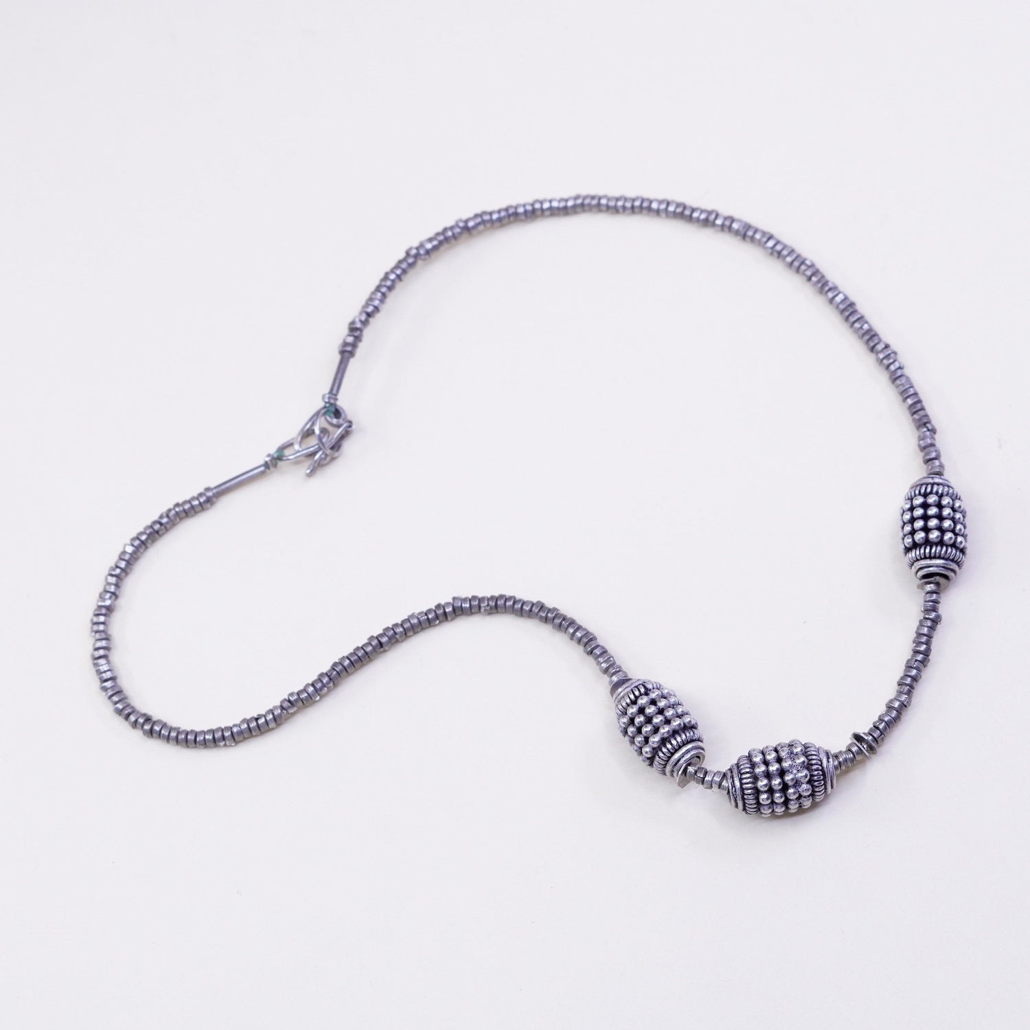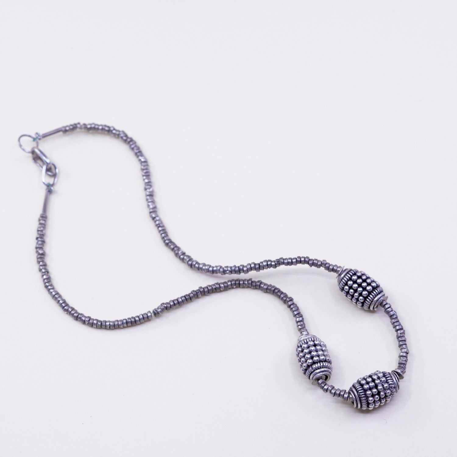 15", vintage Sterling silver Handmade necklace, 925 heishi bead chain with bead pendant, silver tested