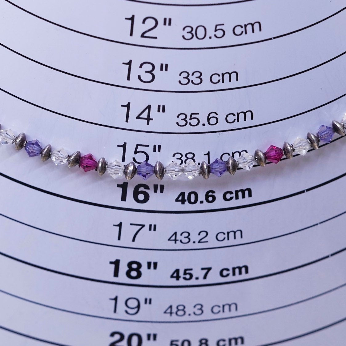 15" vtg Sterling 925 silver handmade beads necklace, w/ crystals beads