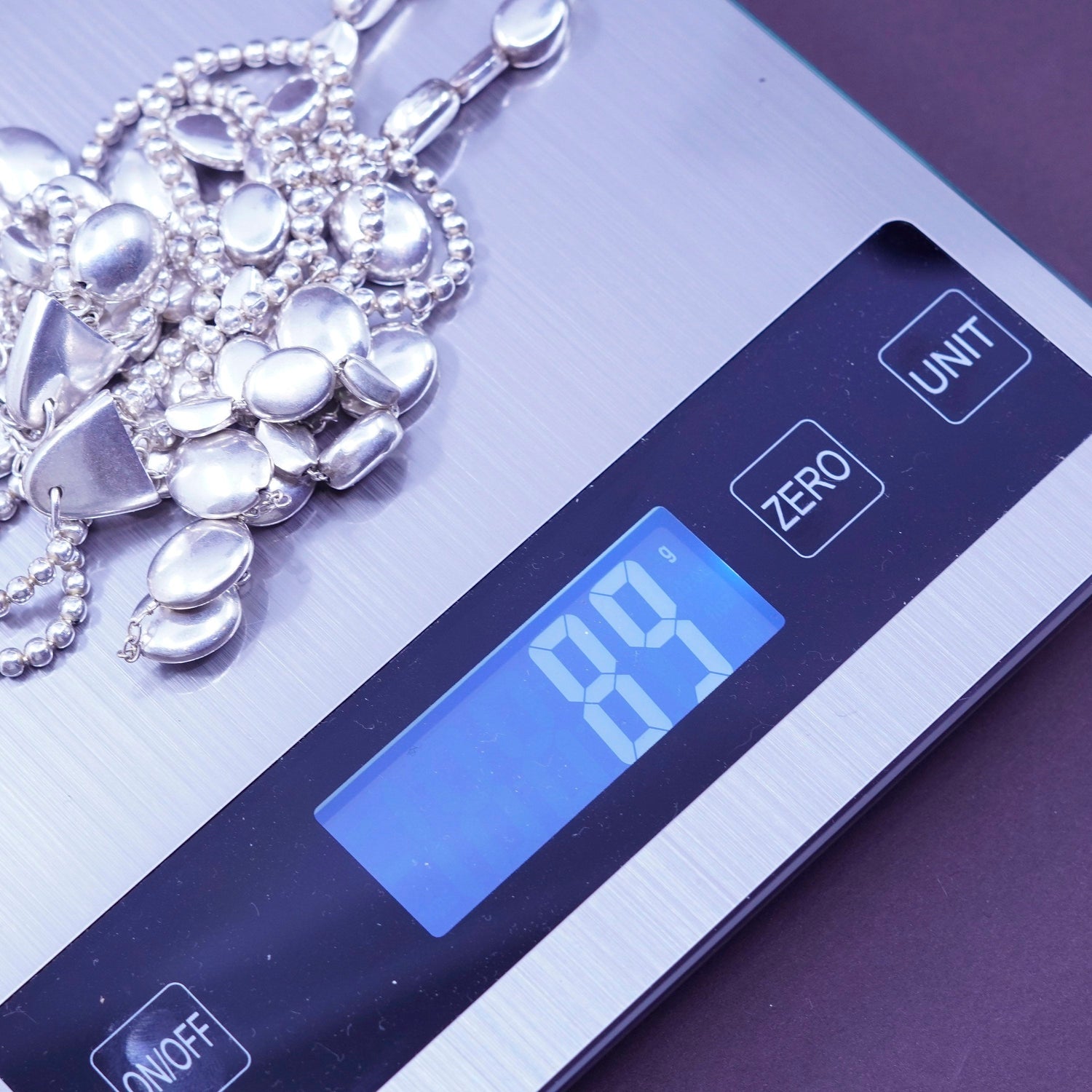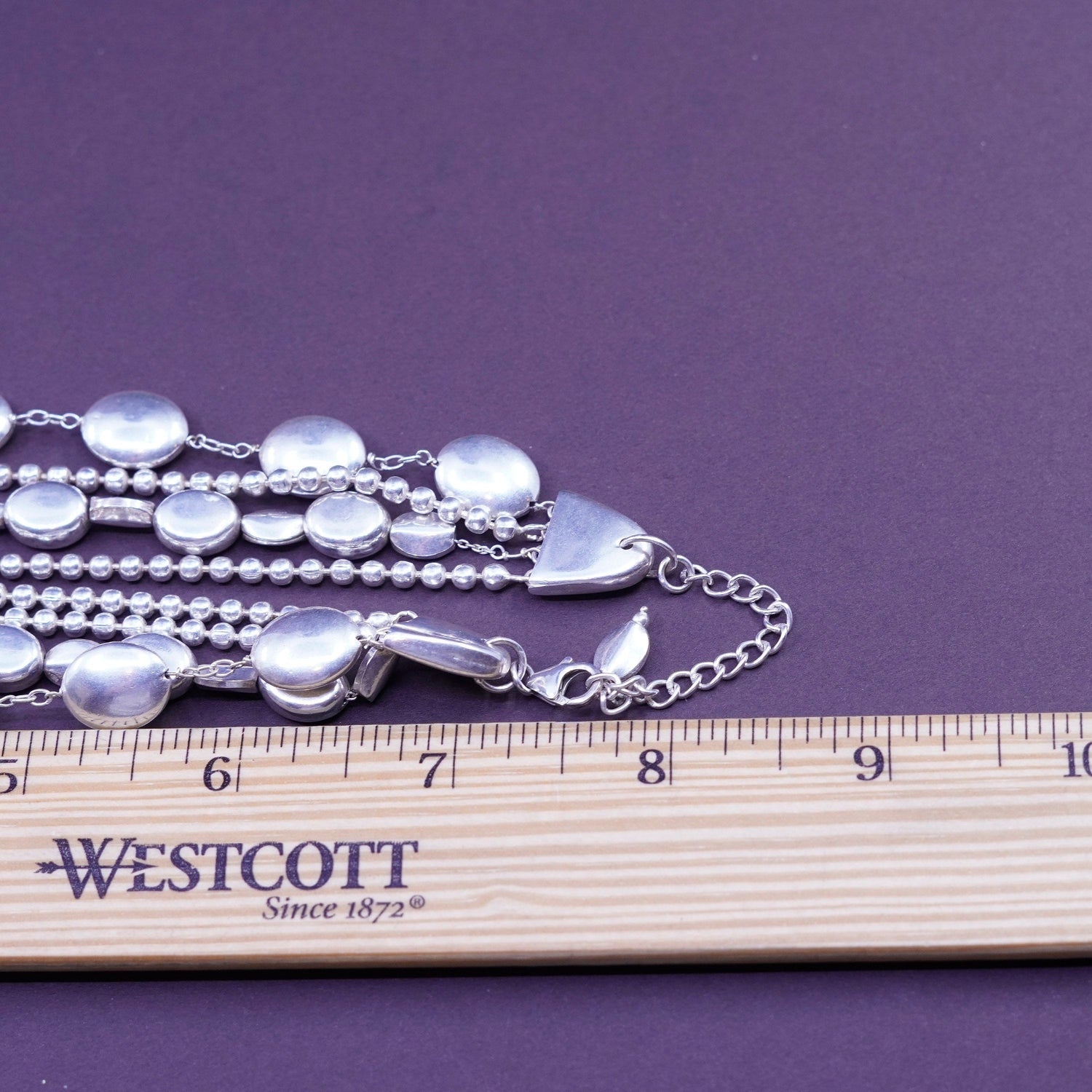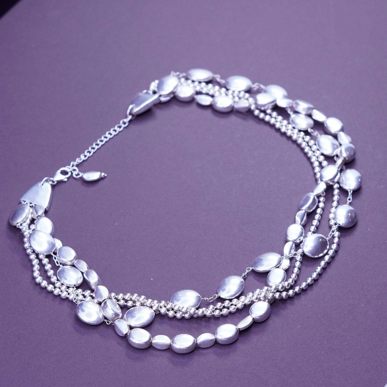 16+1", vintage sterling silver necklace, multi strands 925 silver chain with nugget beads, stamped 925