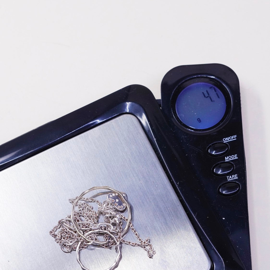 16"+2", 1mm, Vintage sterling silver necklace, 925 silver circle link chain with double circle pendant, stamped 925