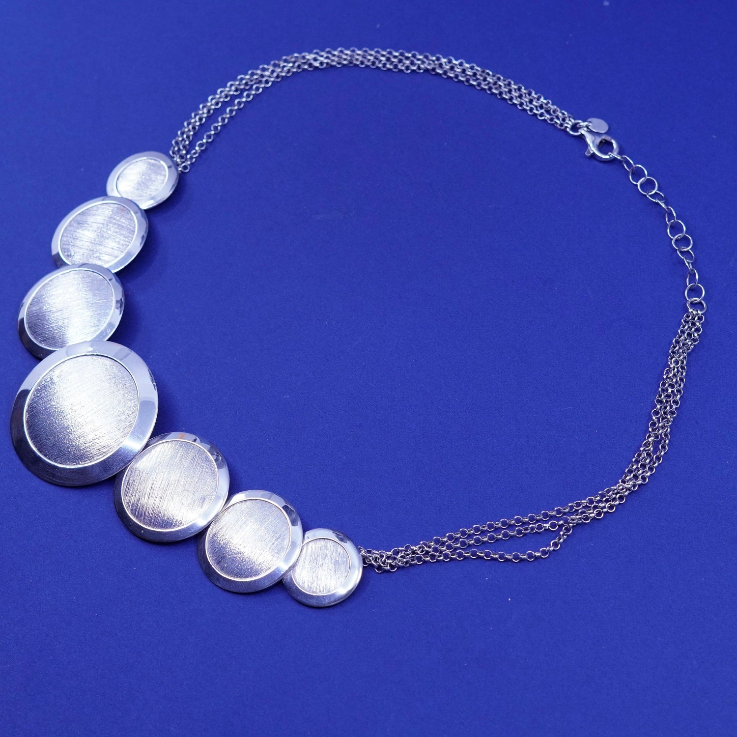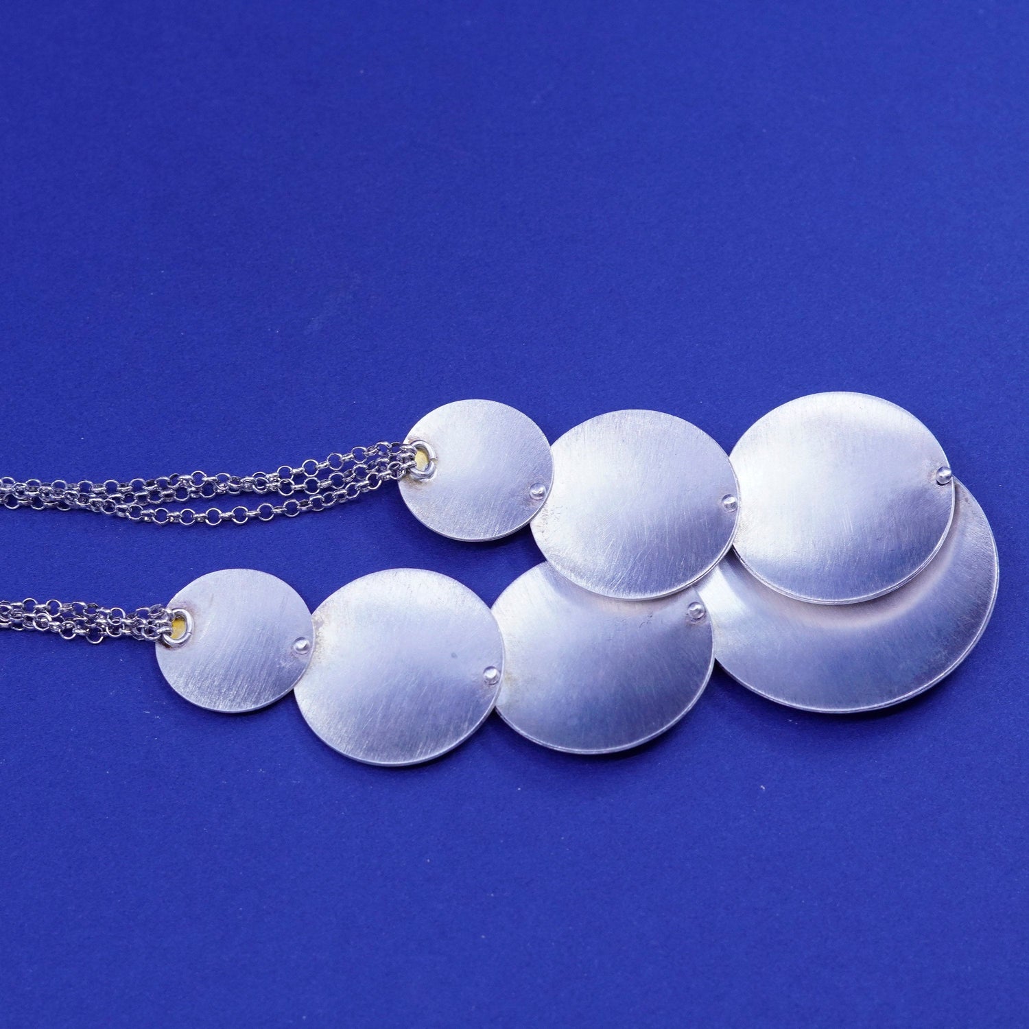 16+2”, vintage Sterling silver necklace, 925 circle chain with textured disc