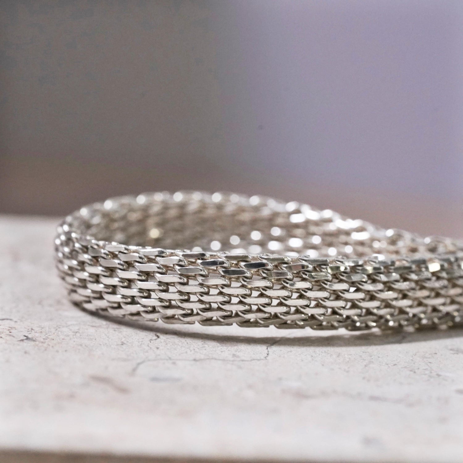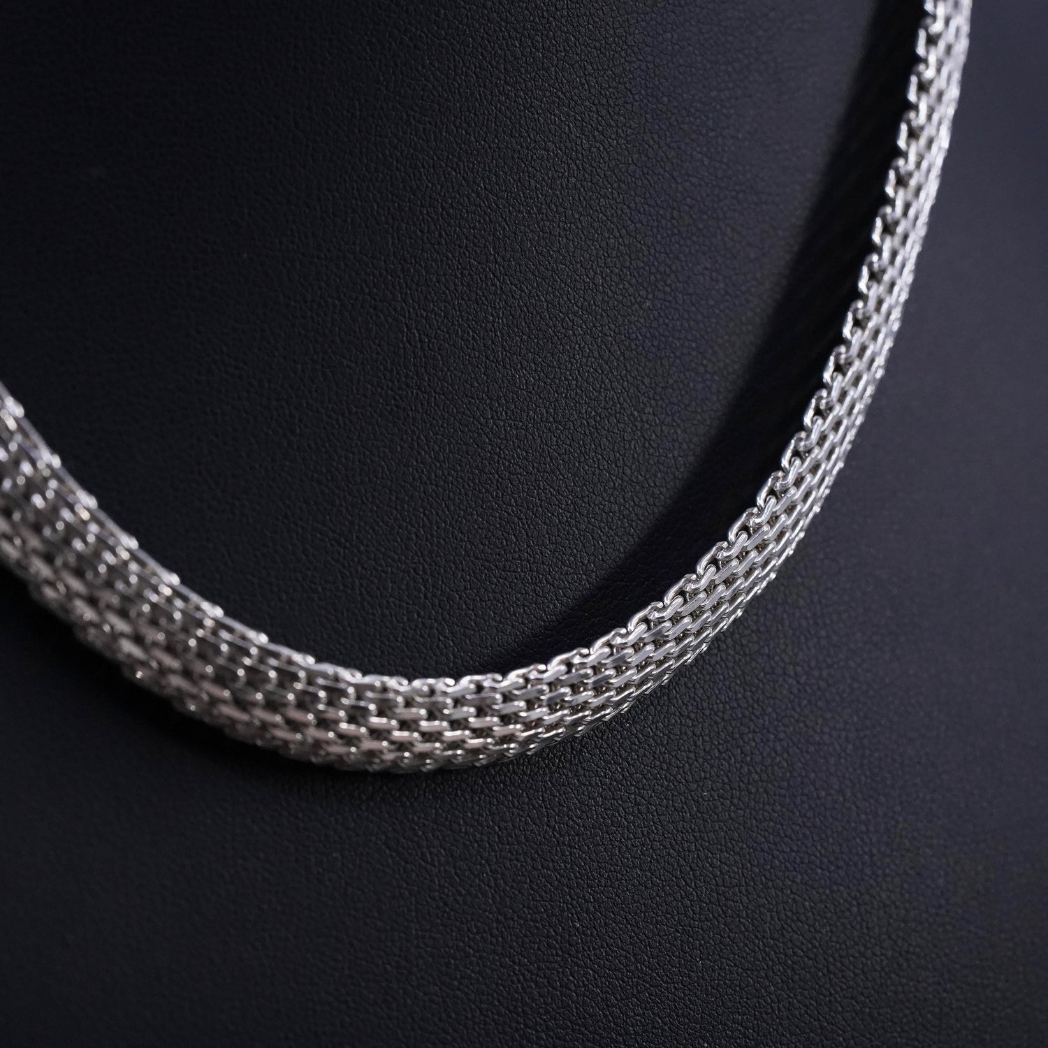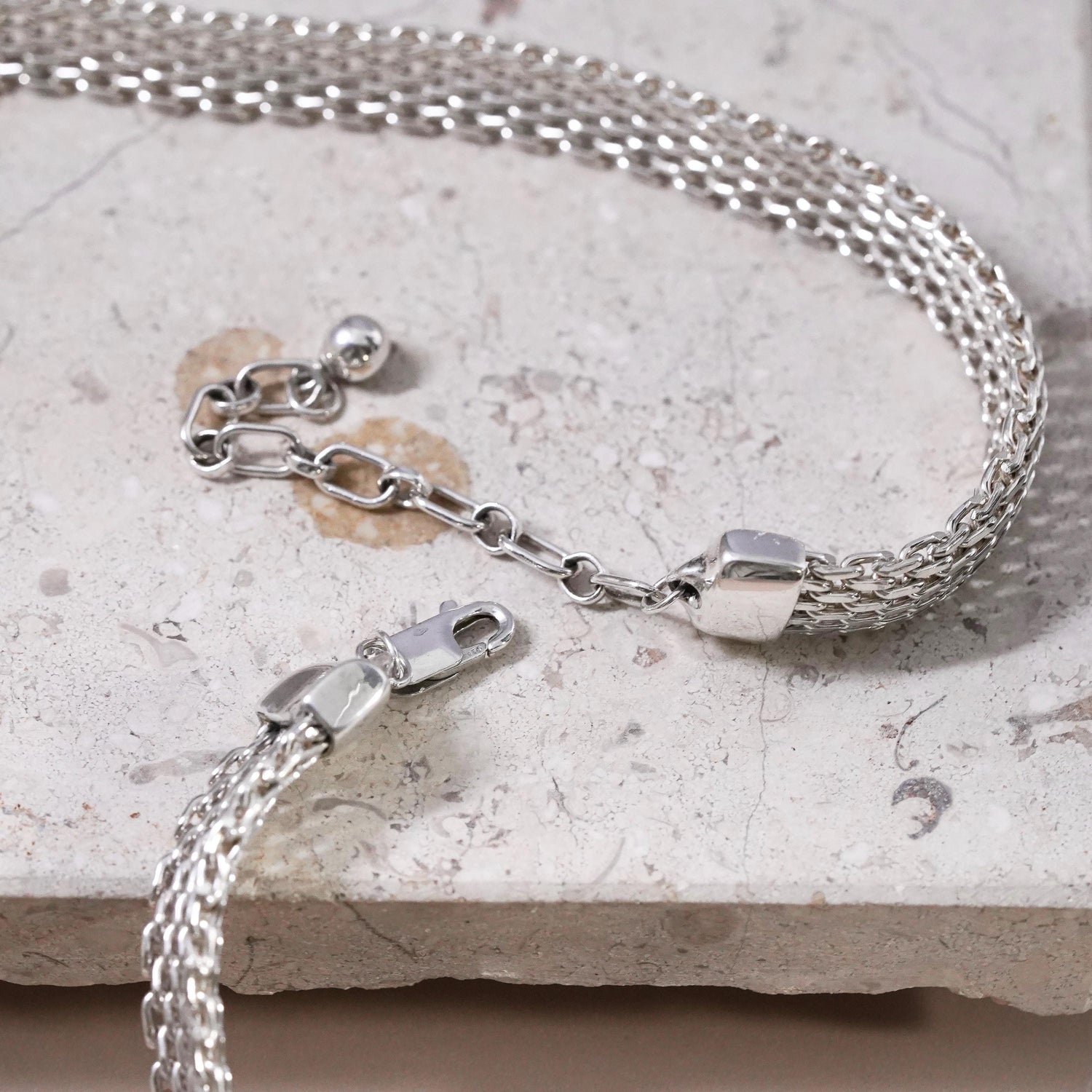 16+2", vintage Italian GC Sterling silver handmade necklace, bold 925 mesh chain, stamped 925 GC