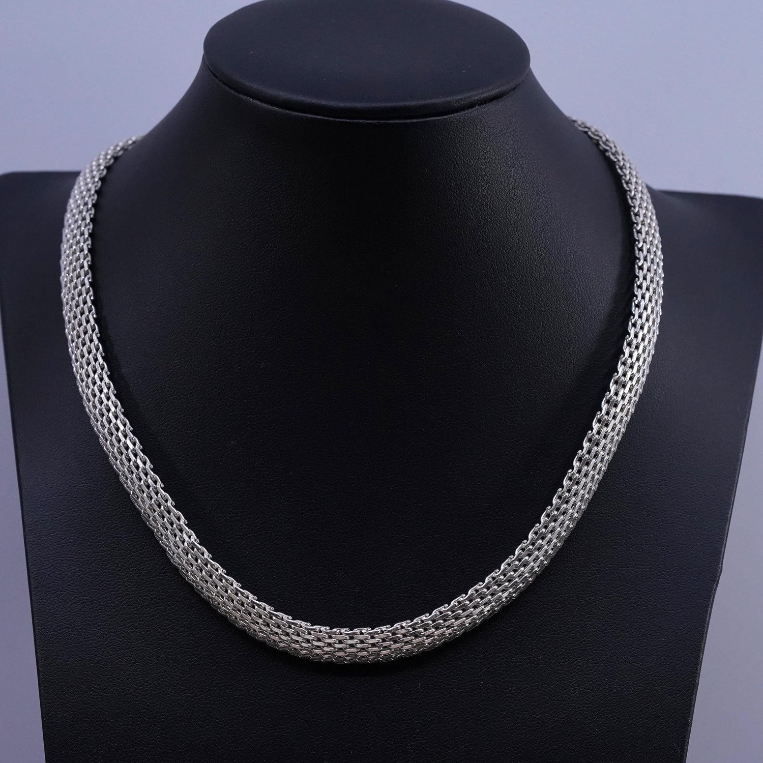 16+2", VTG Italian GC Sterling silver handmade necklace, bold 925 mesh chain