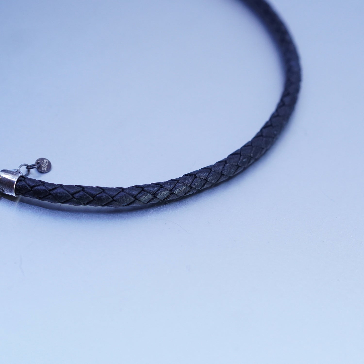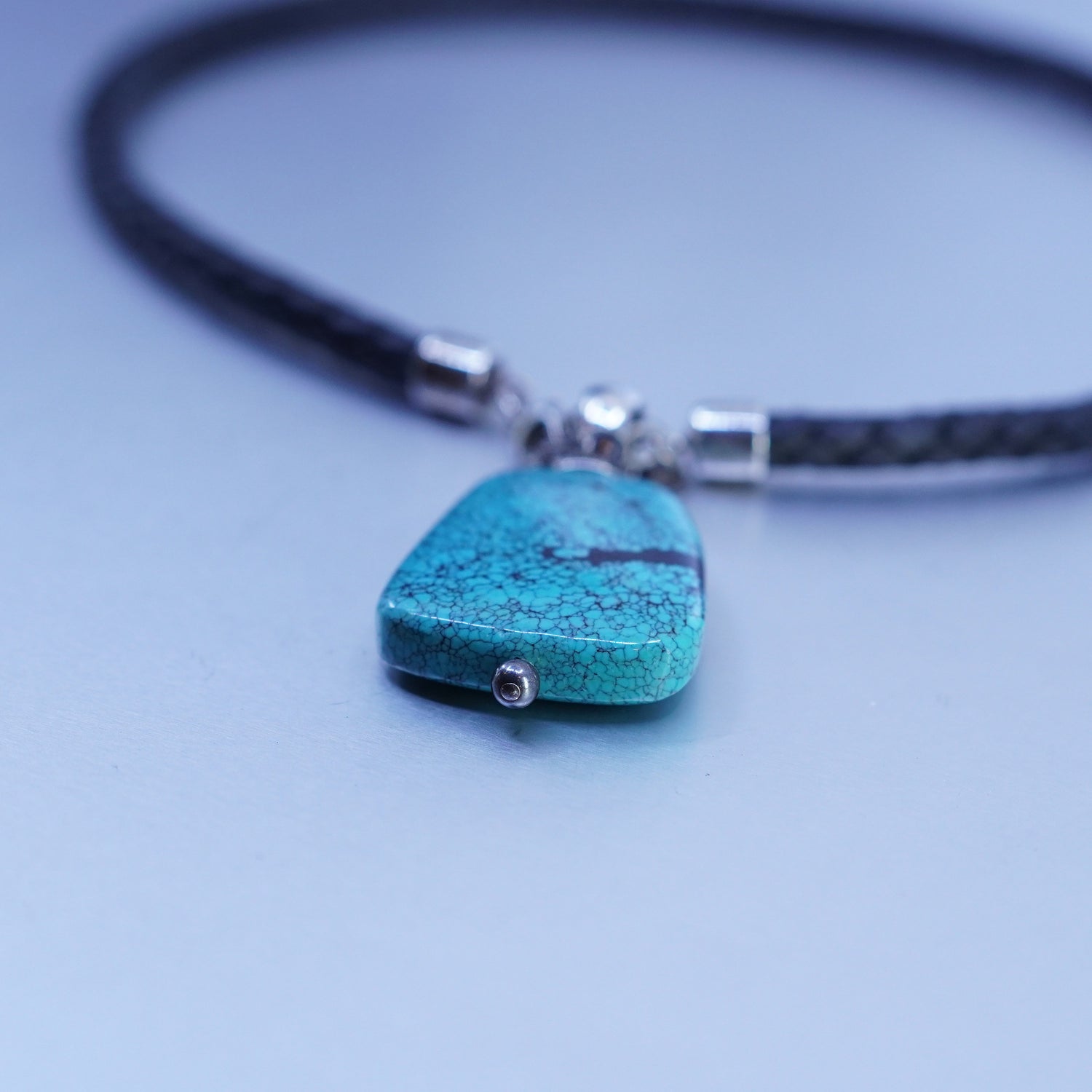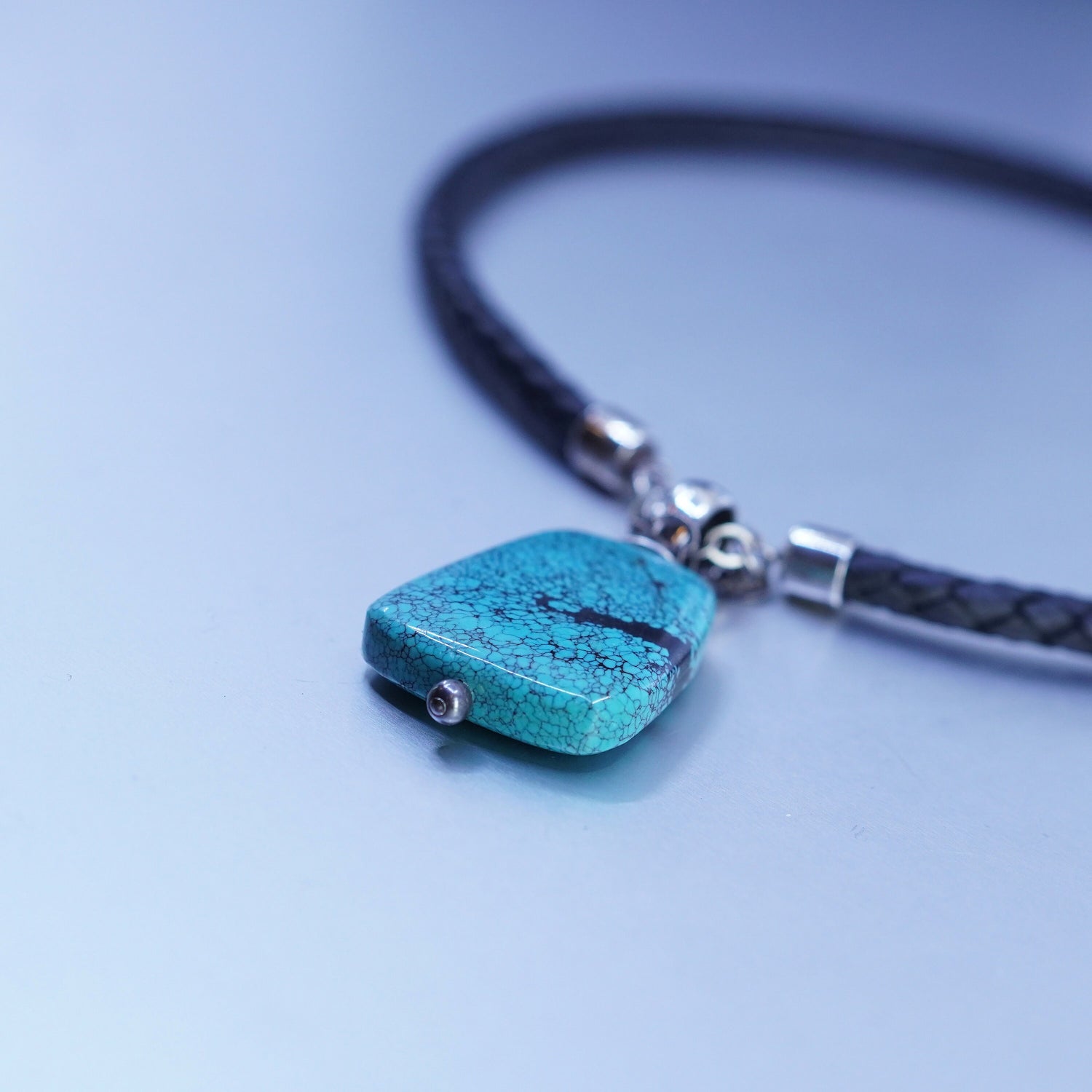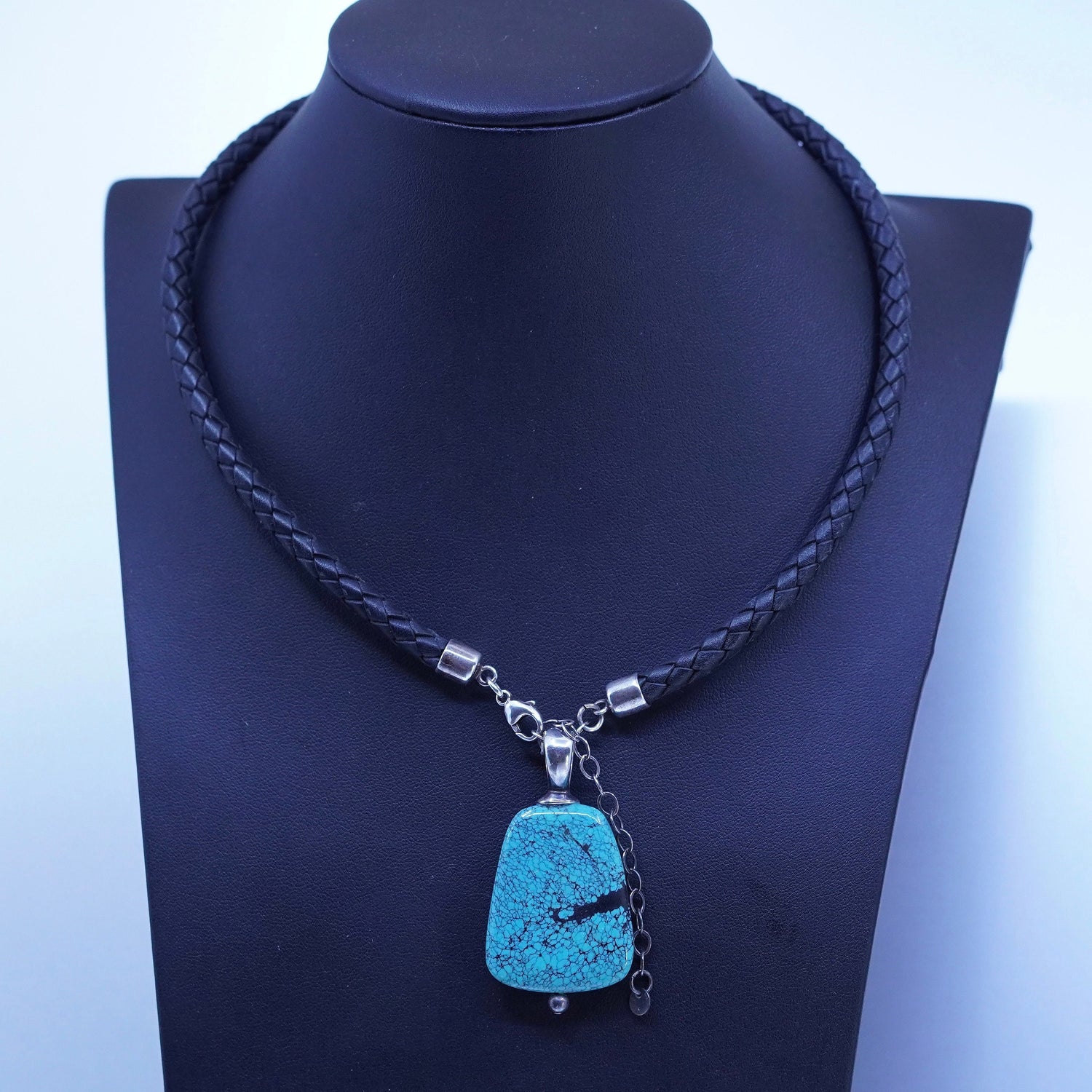 16+3”, southwestern 925 Sterling Silver woven Leather choker Necklace turquoise