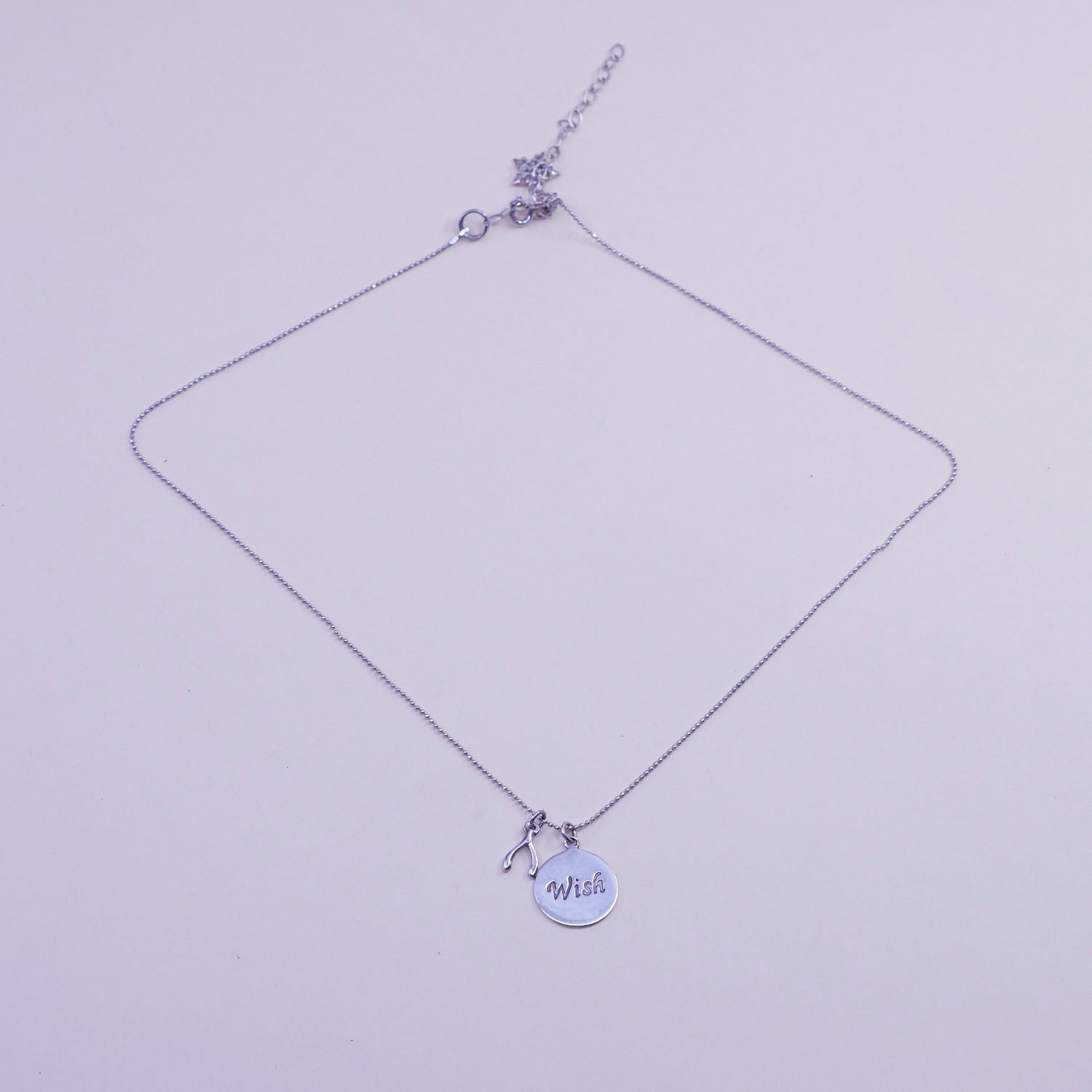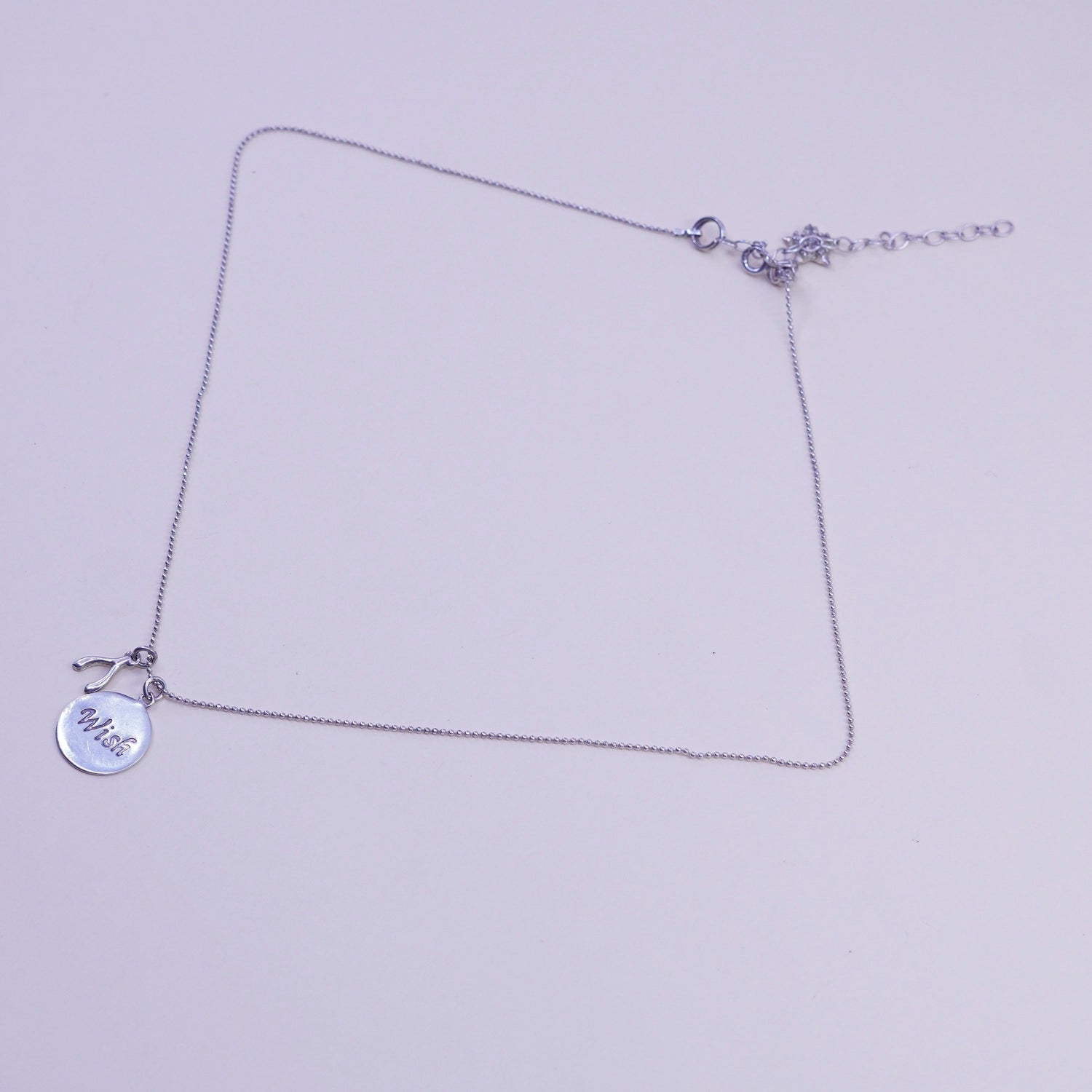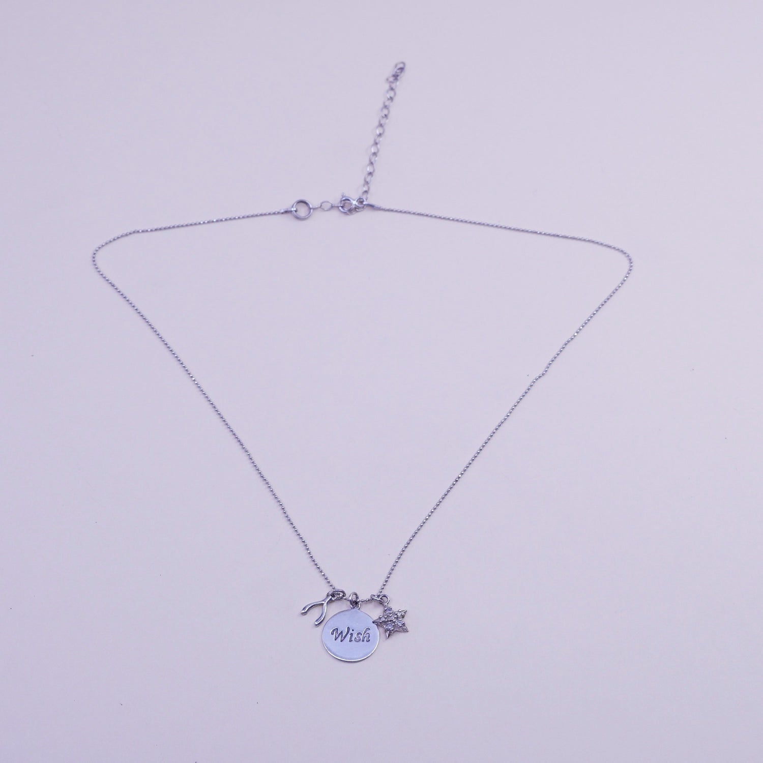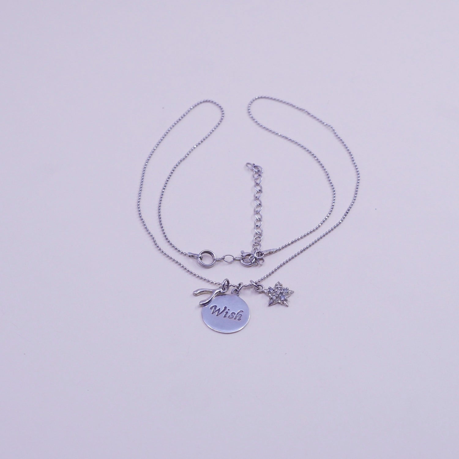 16+3”, sterling 925 silver bead chain necklace wish tag, wish bone star charms