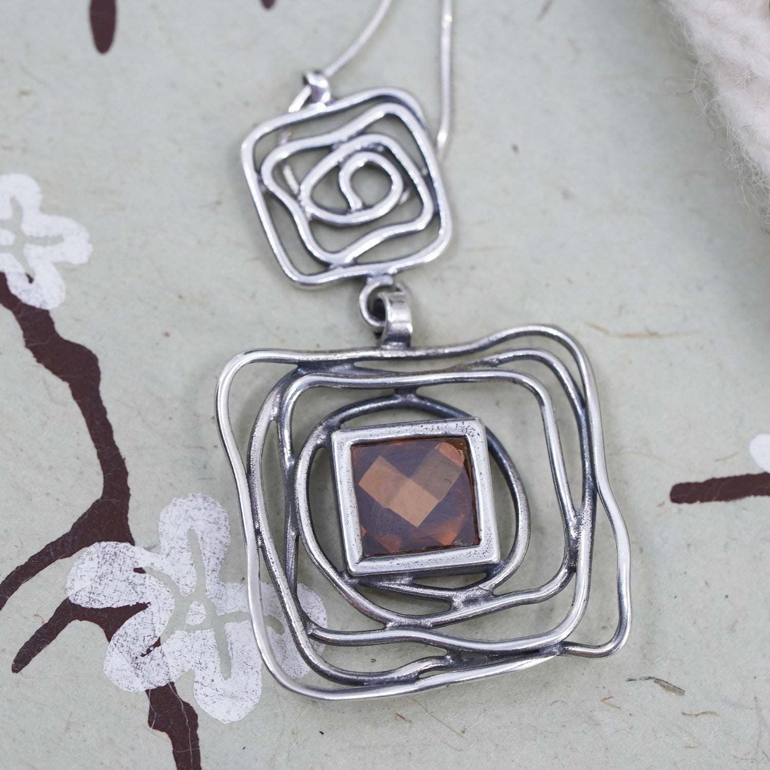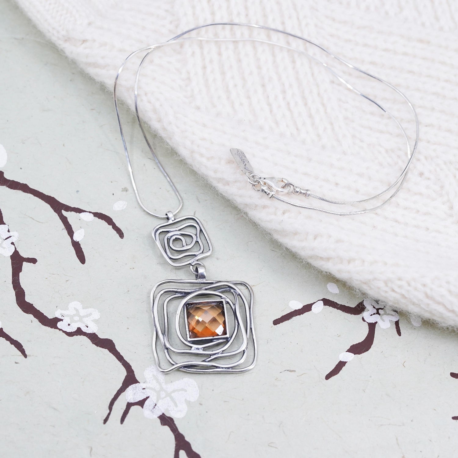 16”, Magnolia Jewelry, Sterling silver necklace 925 square snake square pendant