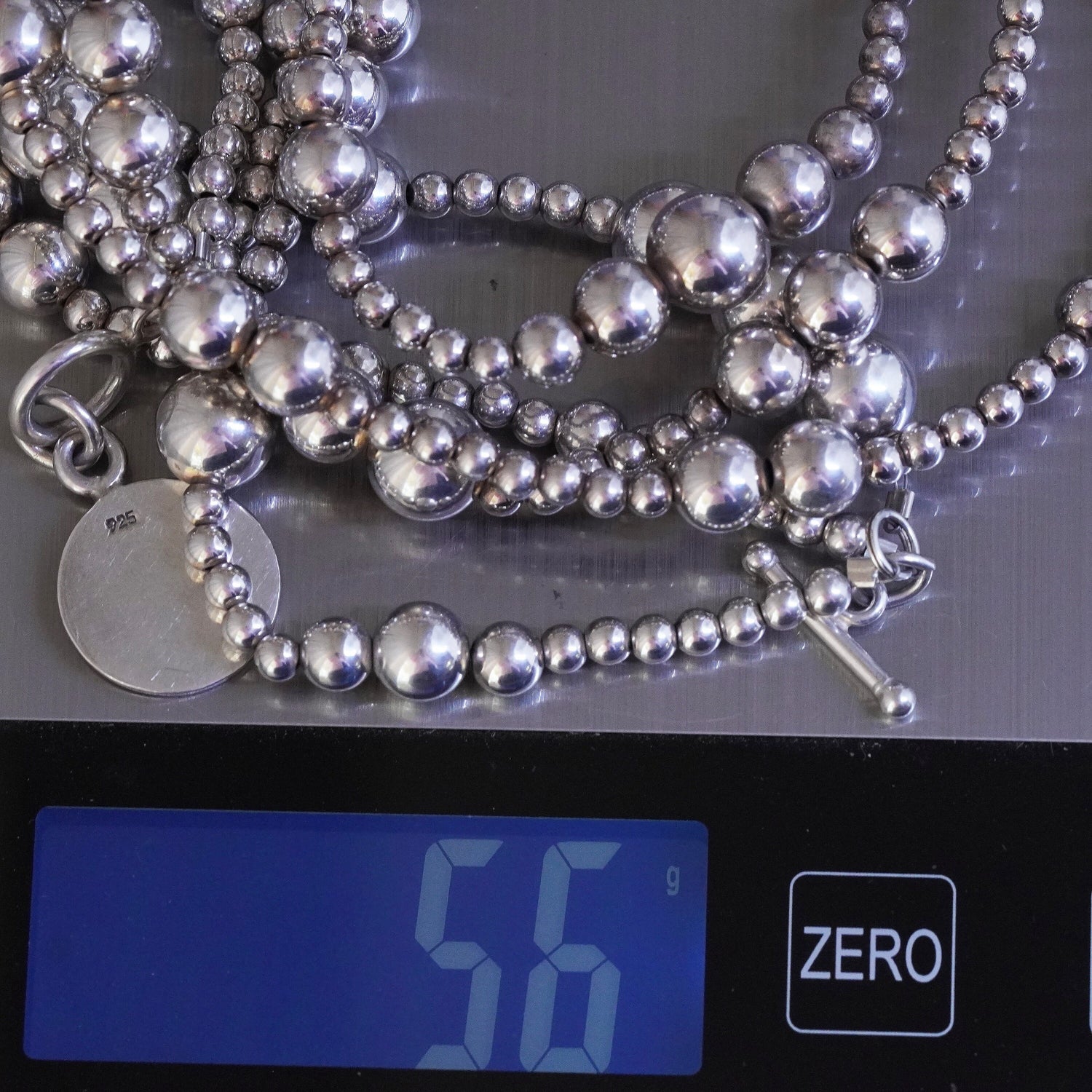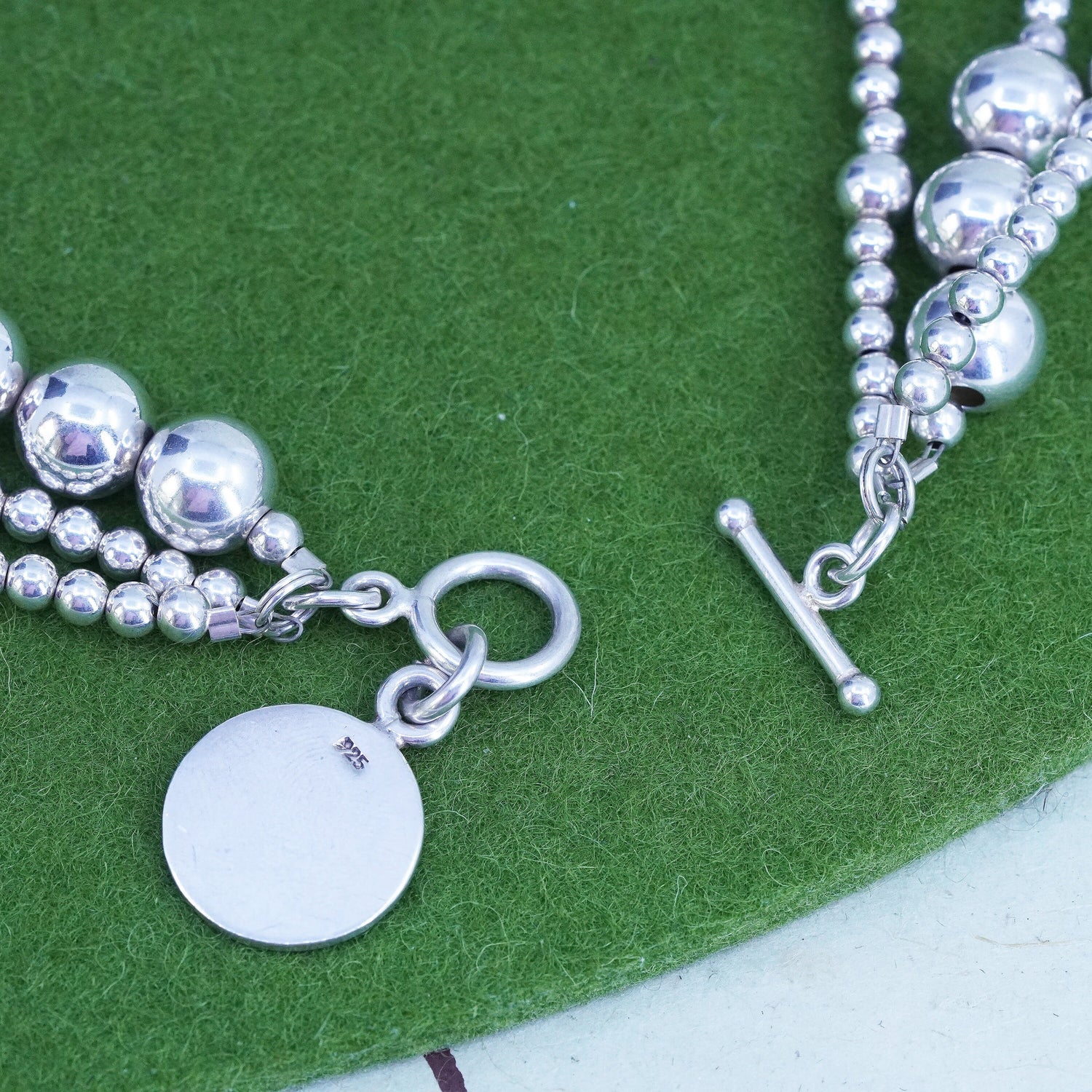16", Vintage Mexican sterling silver handmade multi strands necklace, 925 beaded chain with circle tag and toggle closure, stamped 925