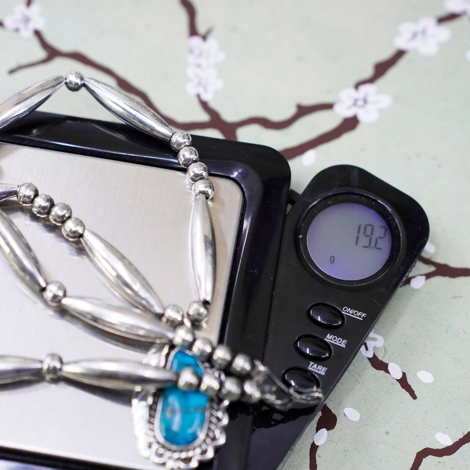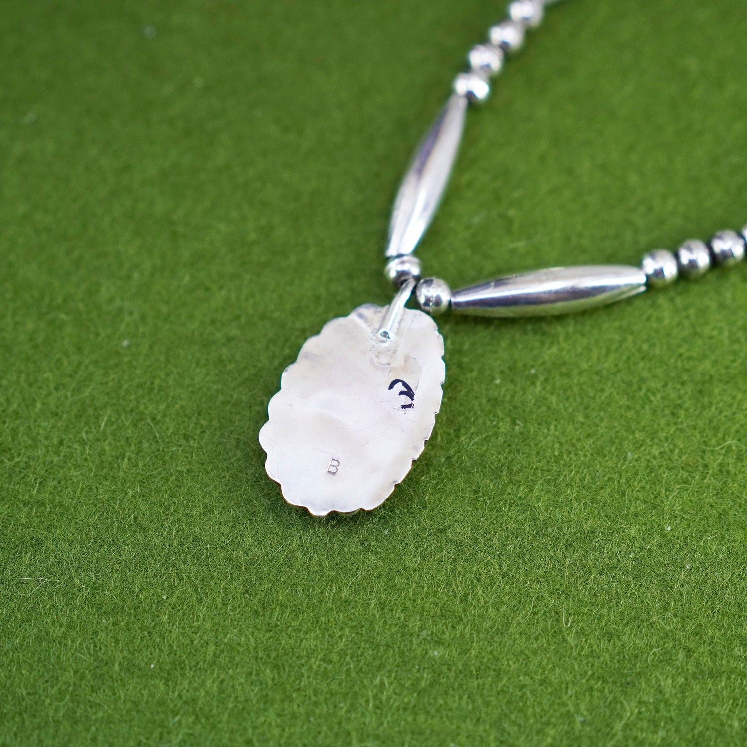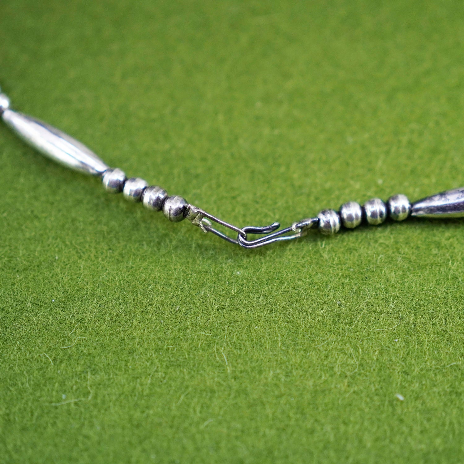 16", Vintage Native American Navajo Sterling 925 silver handmade necklace, 925 bone and bead chain with cripple creek turquoise pendant, silver tested