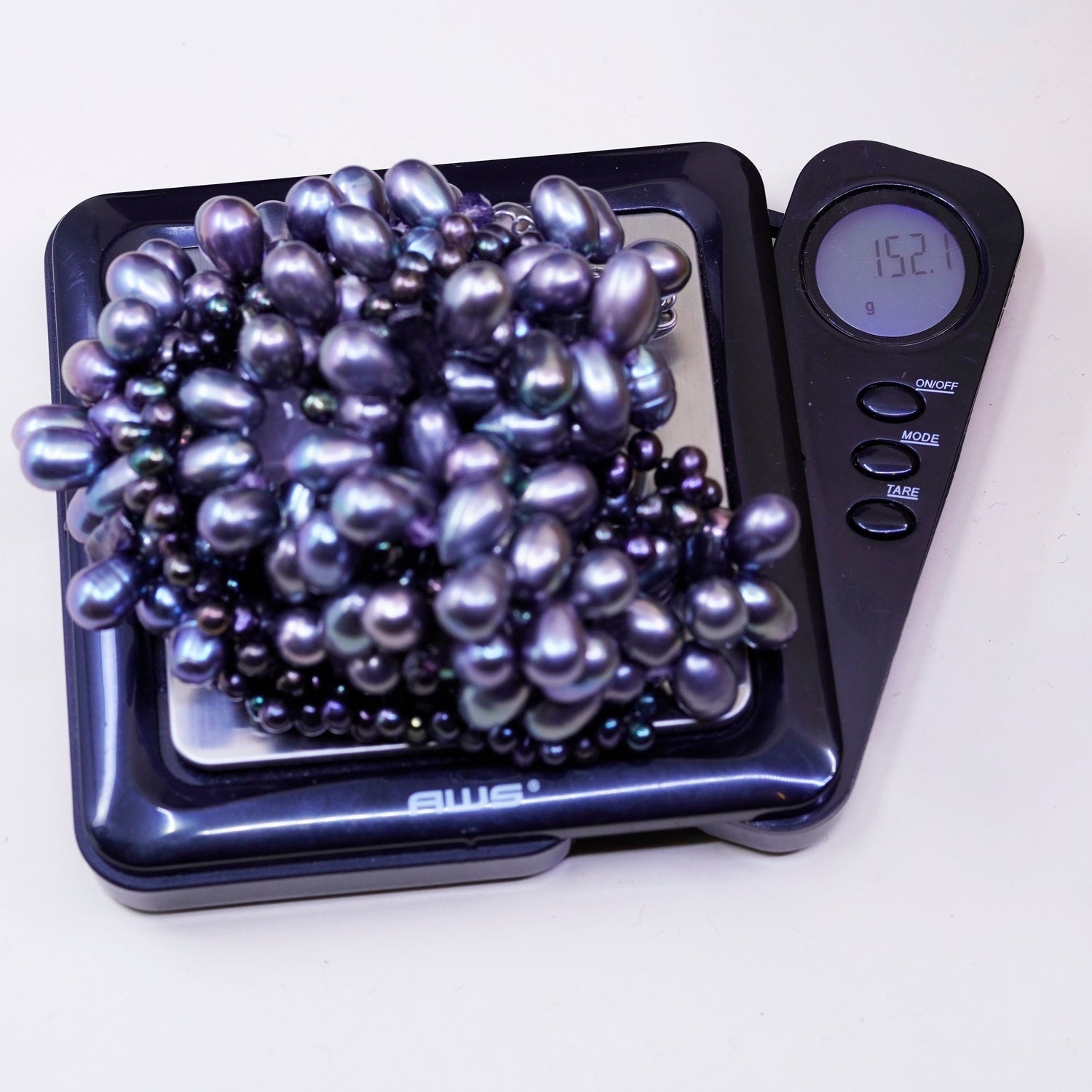 16", vintage Sterling 925 silver handmade multi strands necklace with 10mm-11mm black pearl beads, stamped 925