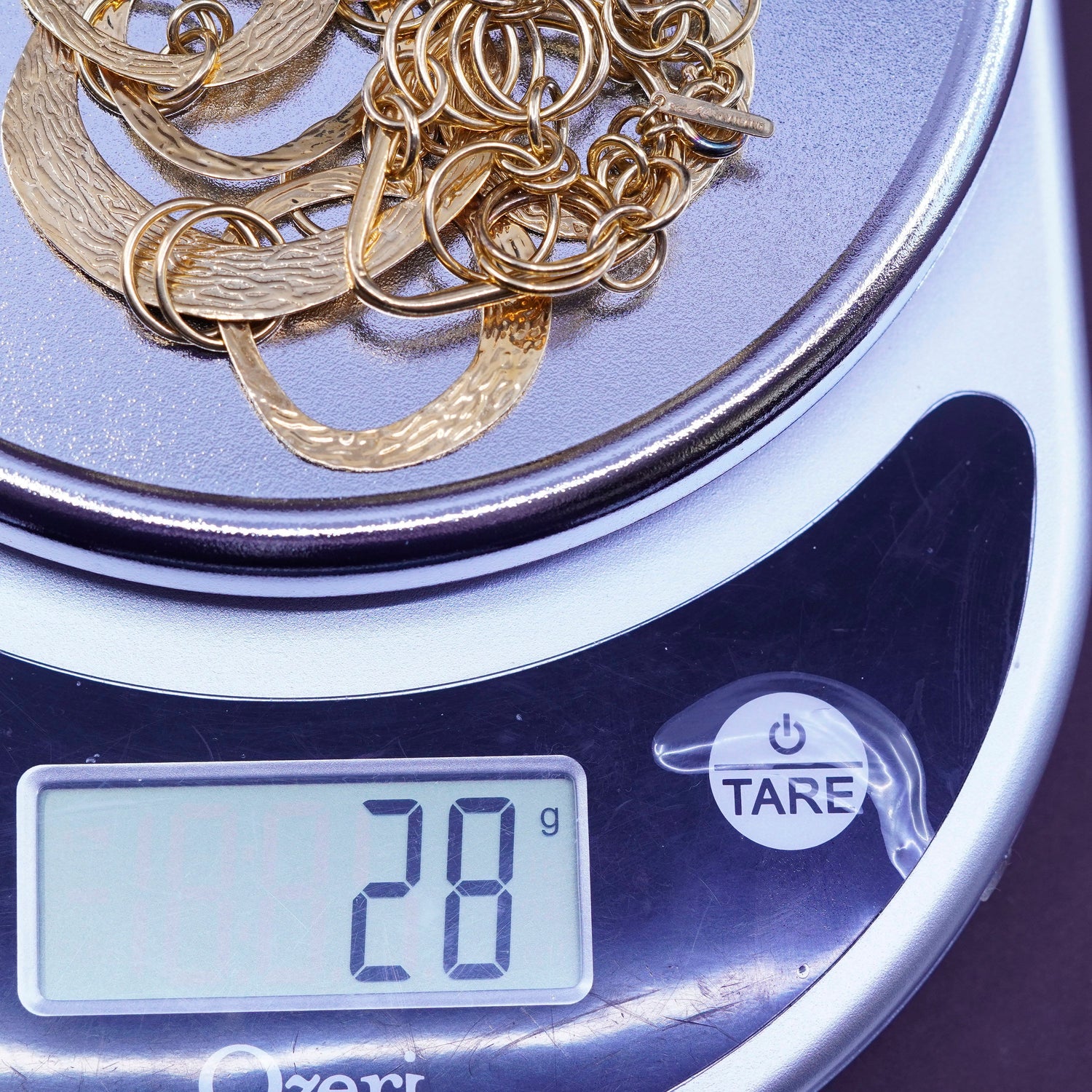 16”, vermeil gold filled Sterling silver necklace textured 925 chain giant disc