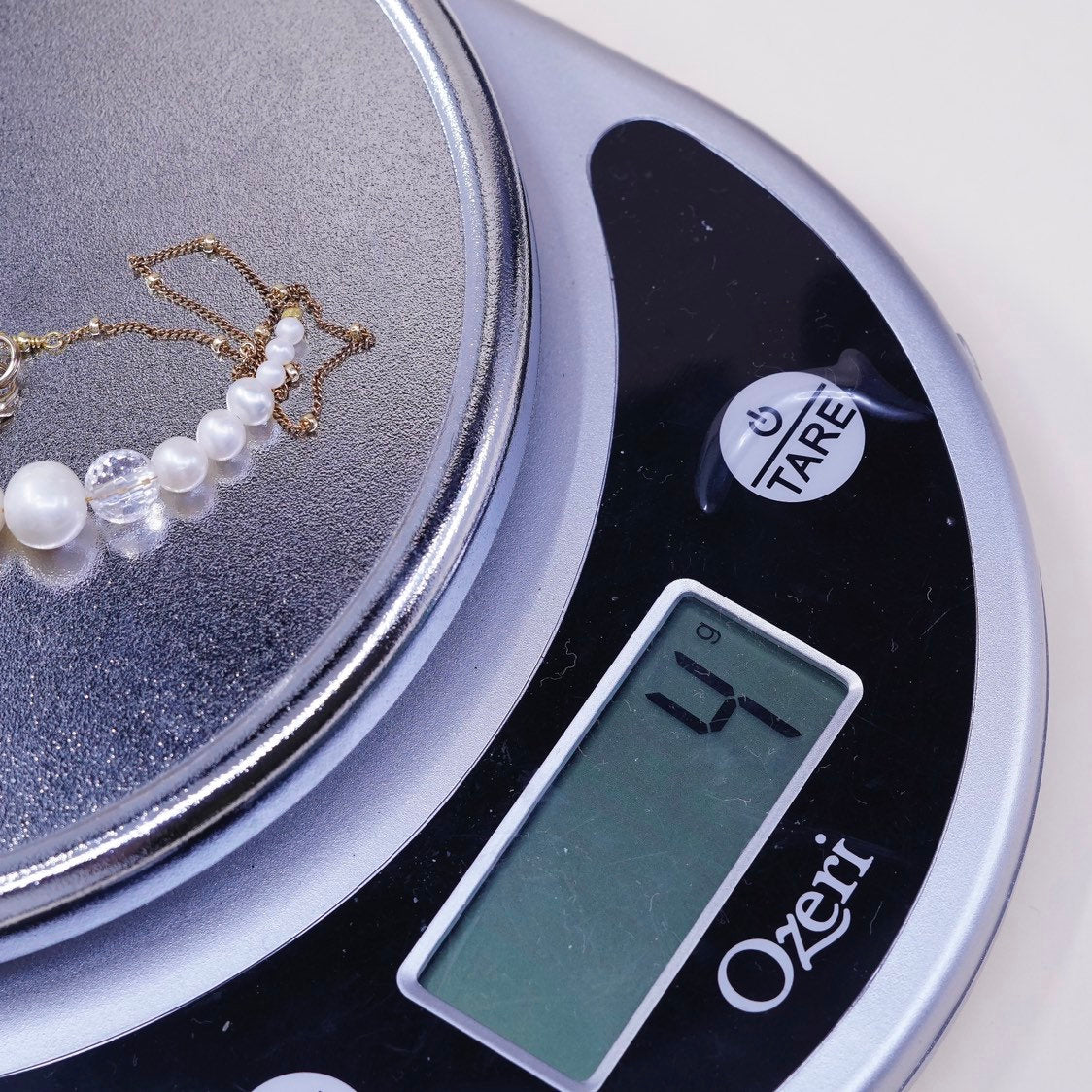 16", Vintage Vermeil gold over Sterling silver handmade circle chain necklace, 925 silver with pearl beads, stamped 925