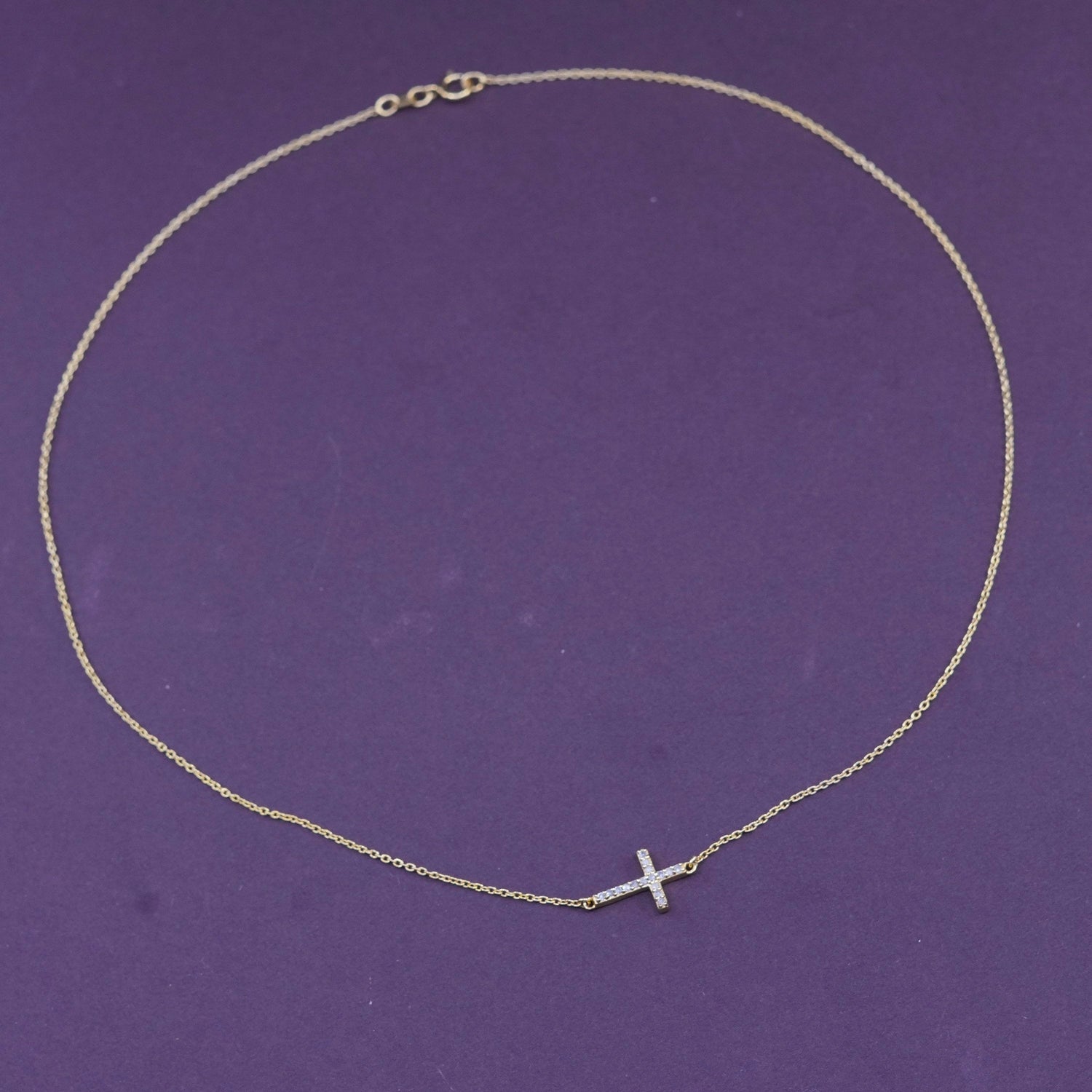 16", 1mm, vintage vermeil gold over Sterling silver necklace, 925 circle chain with cluster diamond cross pendant, stamped 925 Sun