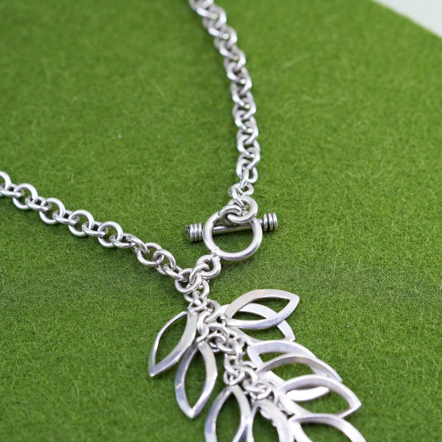 17”, sterling silver necklace, 925 handmade bold circle link chain leafy charms