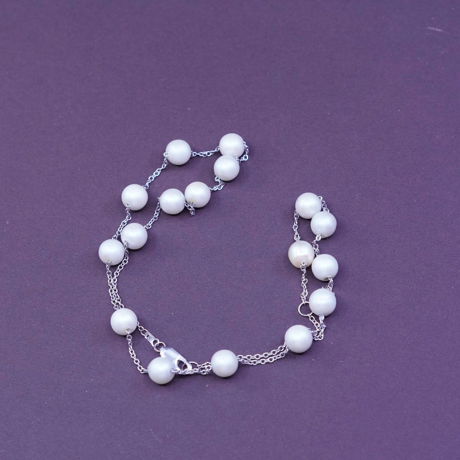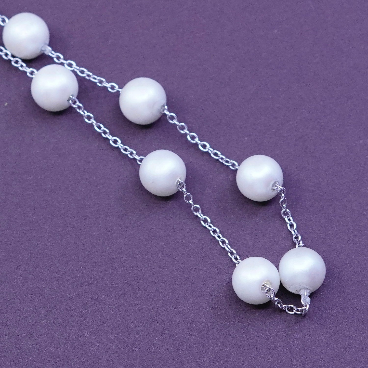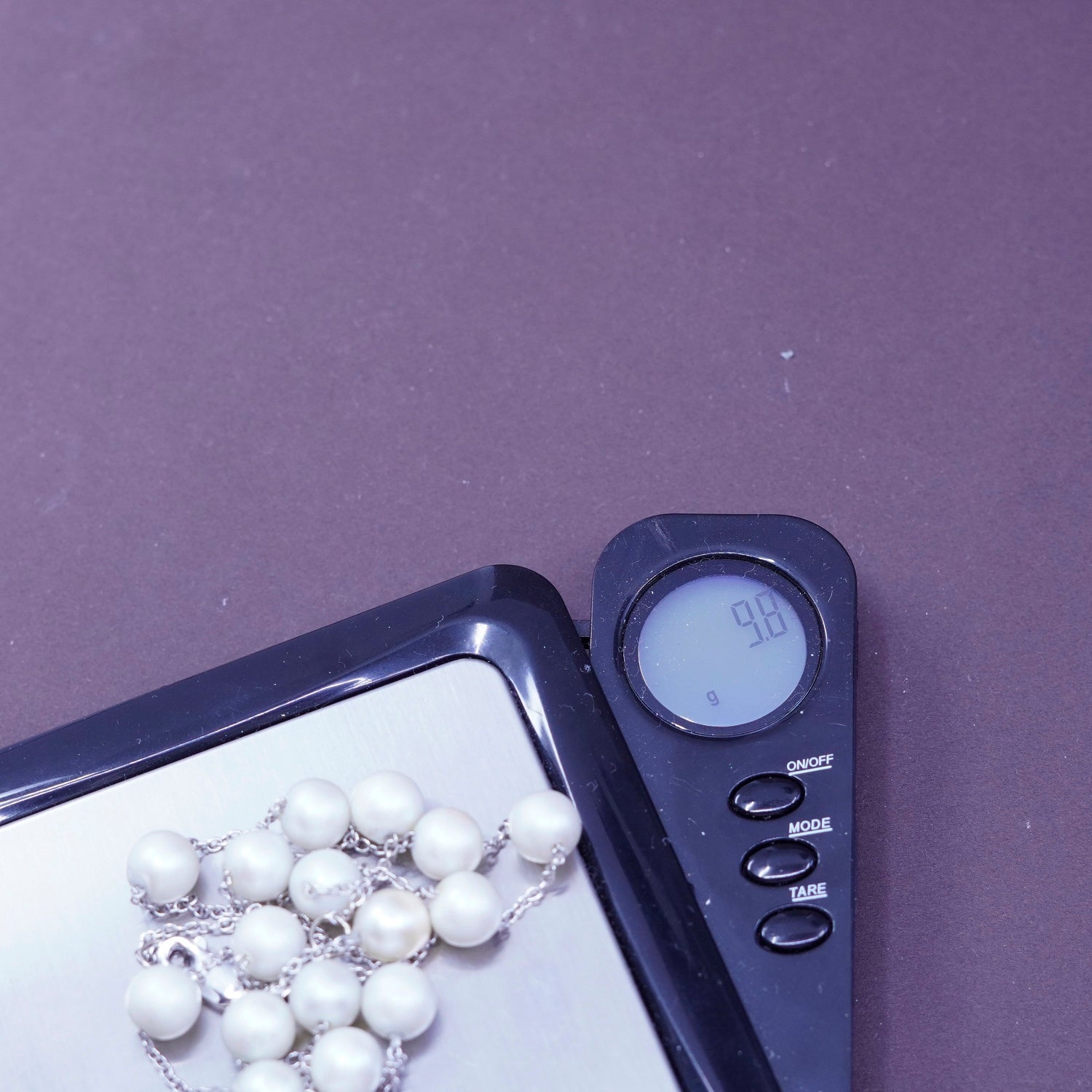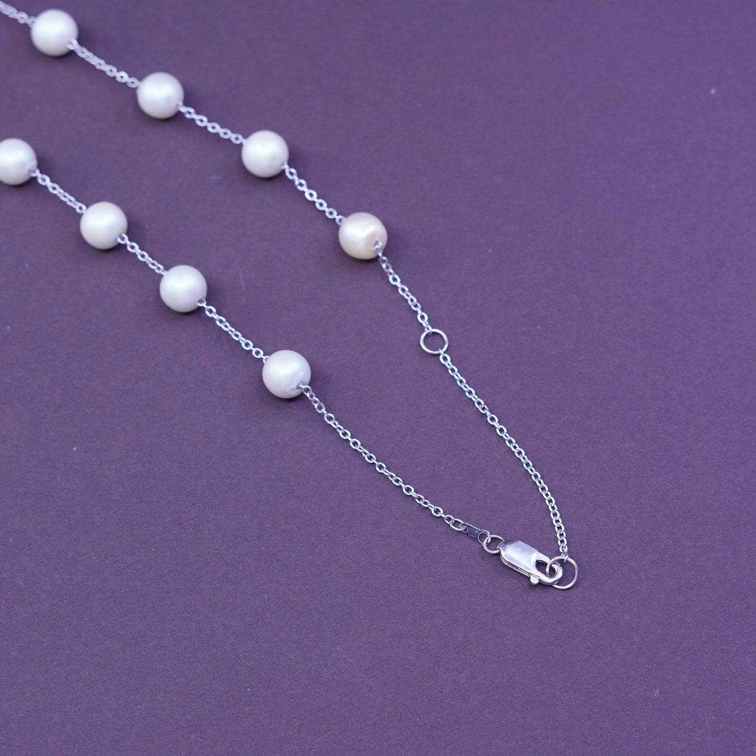 18+2", 9.8g, vintage white 14K gold handmade necklace, circle chain with 7-8mm pearl, stamped 14K