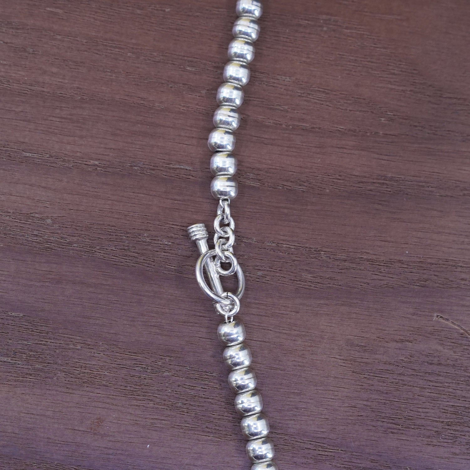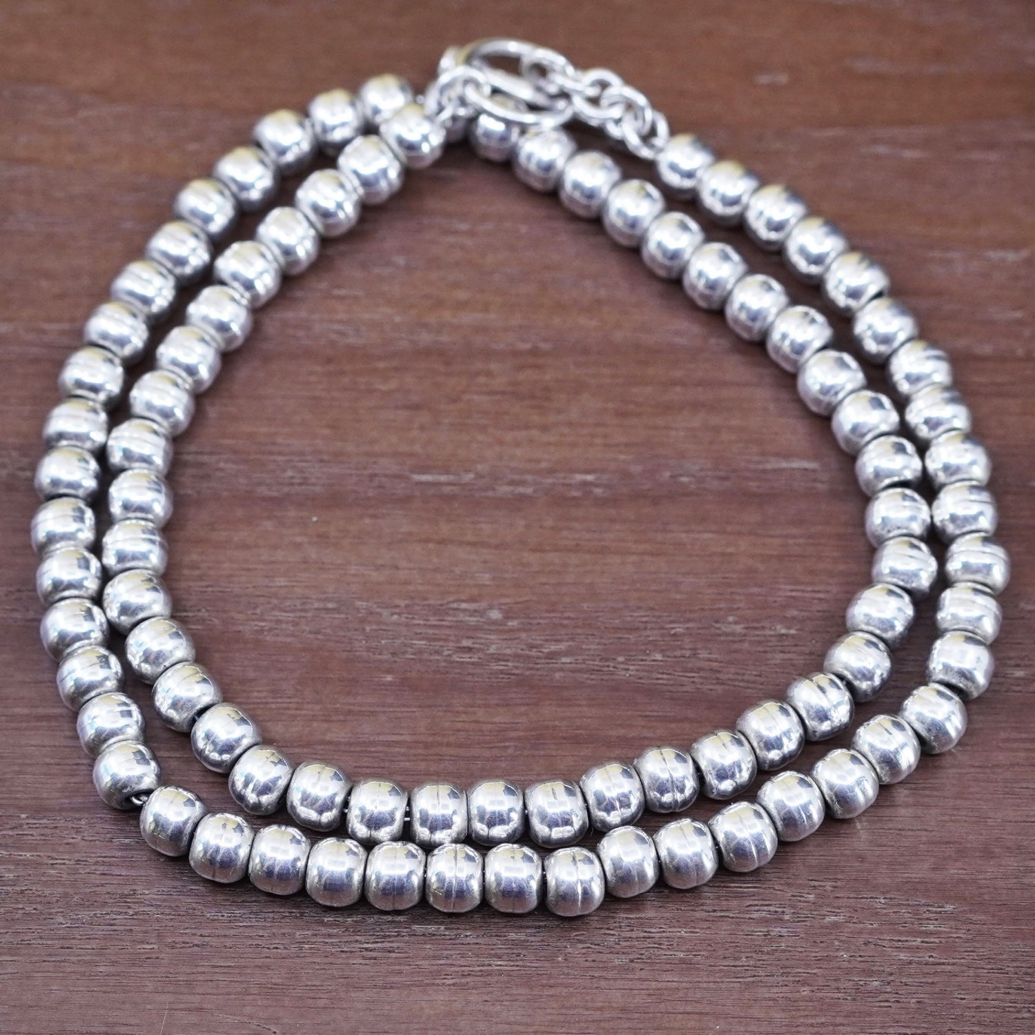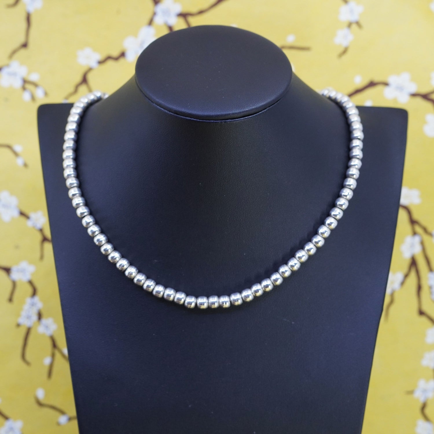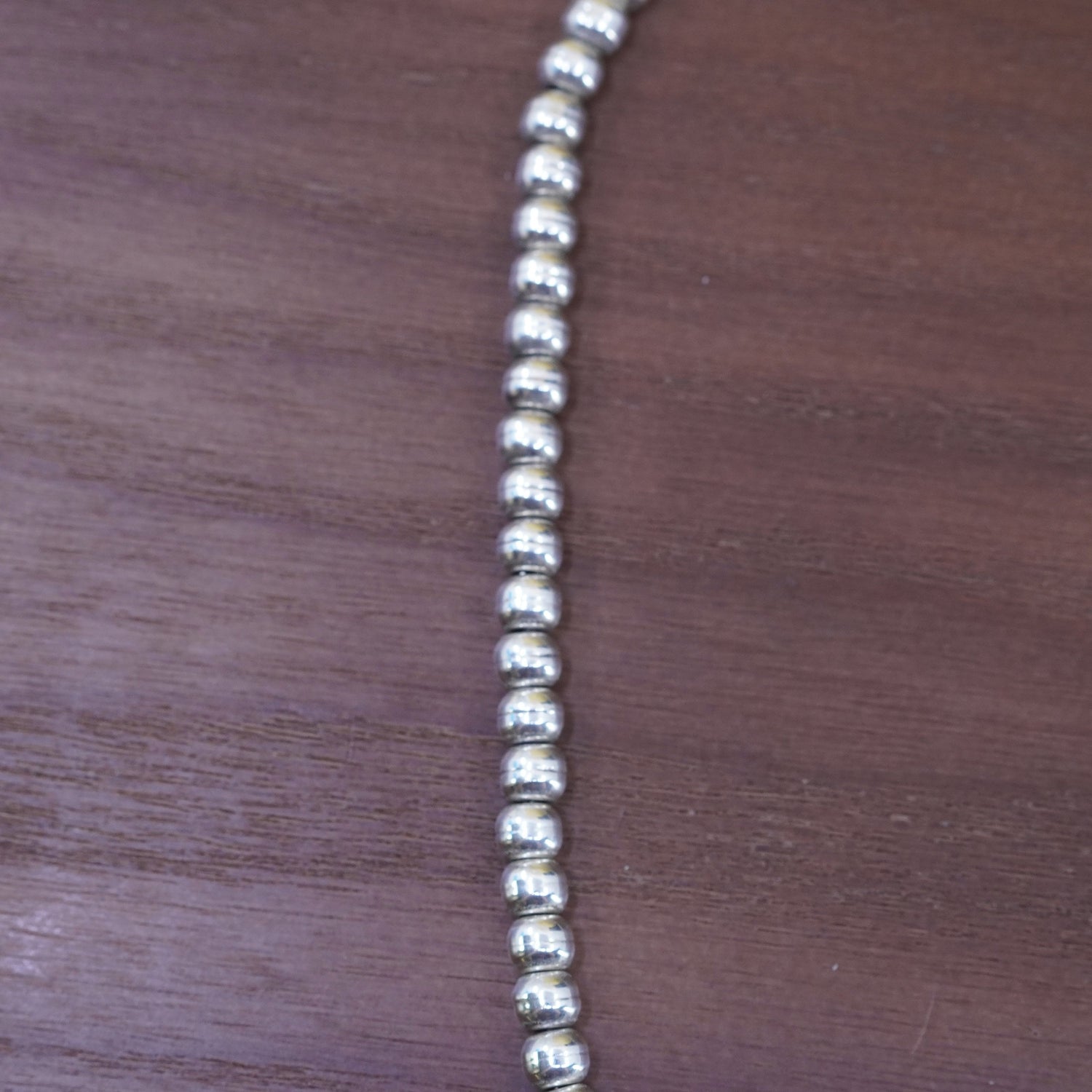 18" 6mm, vintage Sterling silver handmade necklace, 925 bead chain, stamped Ster