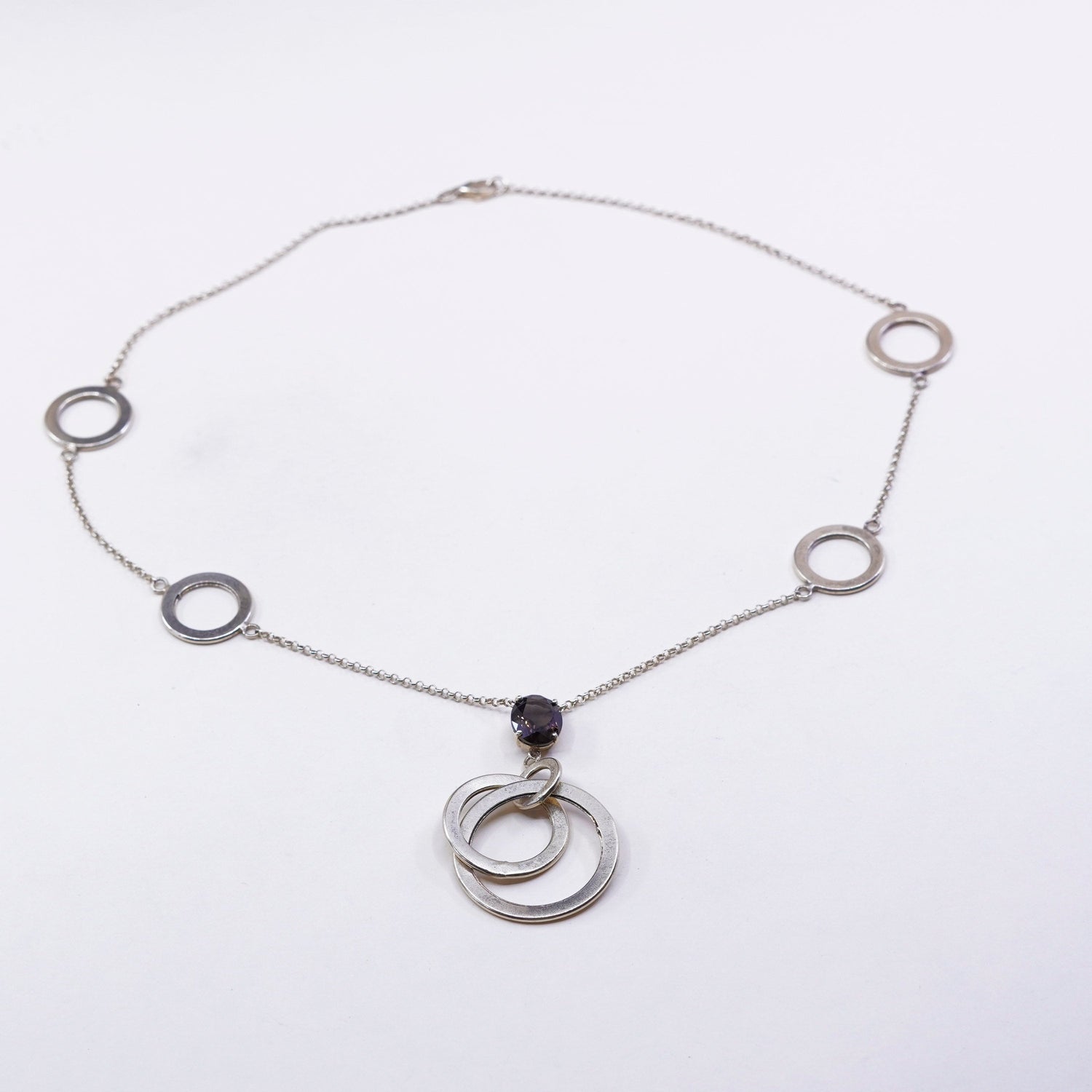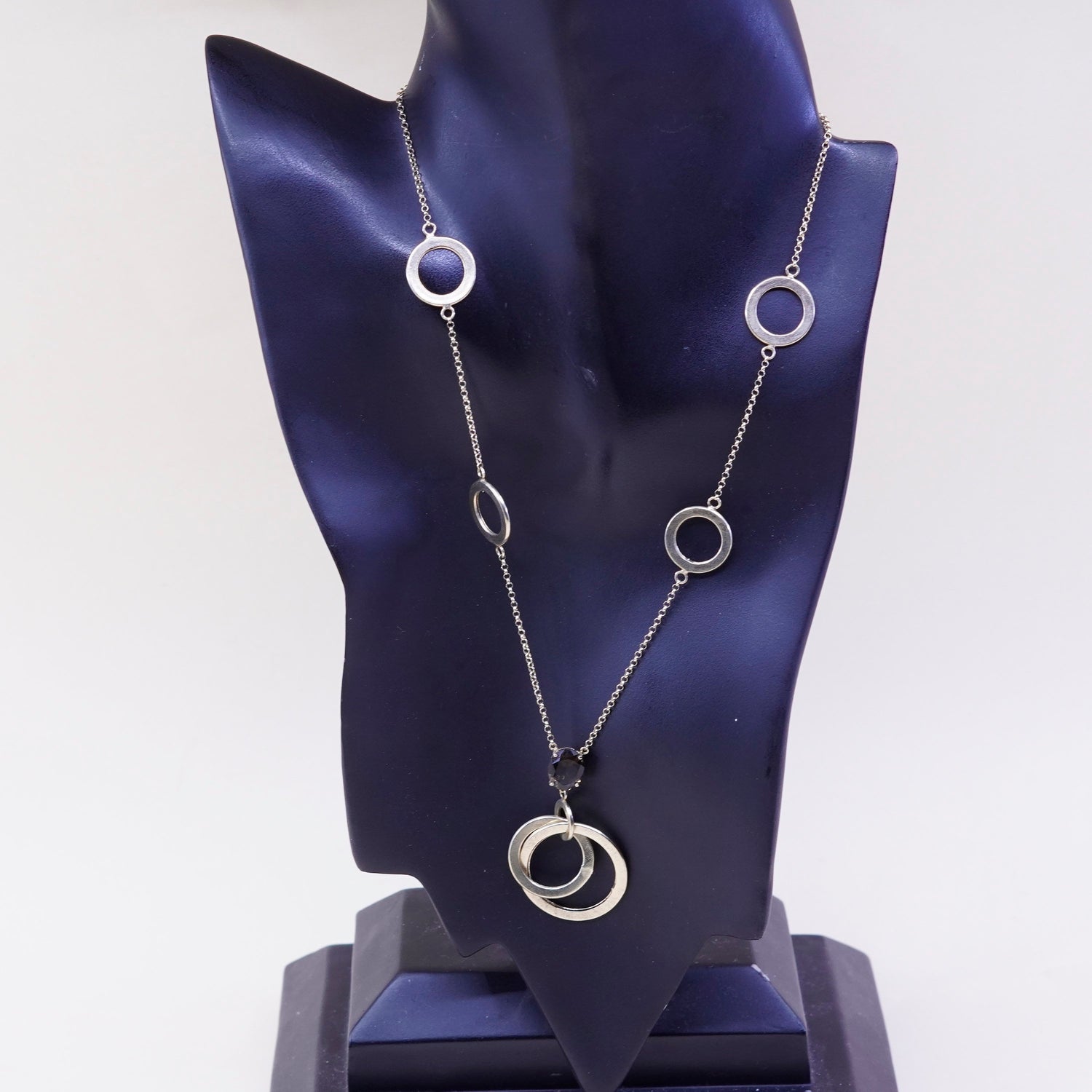 18", 1mm, Vintage gold filled sterling silver necklace, 925 chain with Crystal and entwined circle pendant, stamped 925