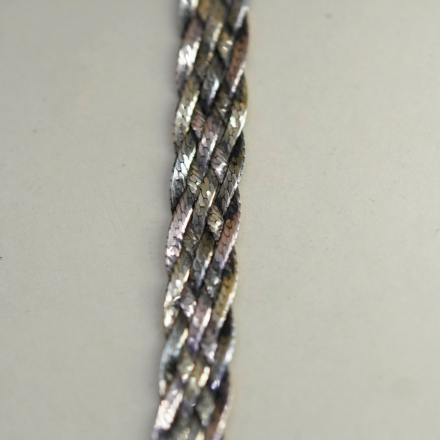 18", 8mm, Vintage gold filled sterling silver necklace, 925 woven braided herringbone chain, stamped 925 Italy