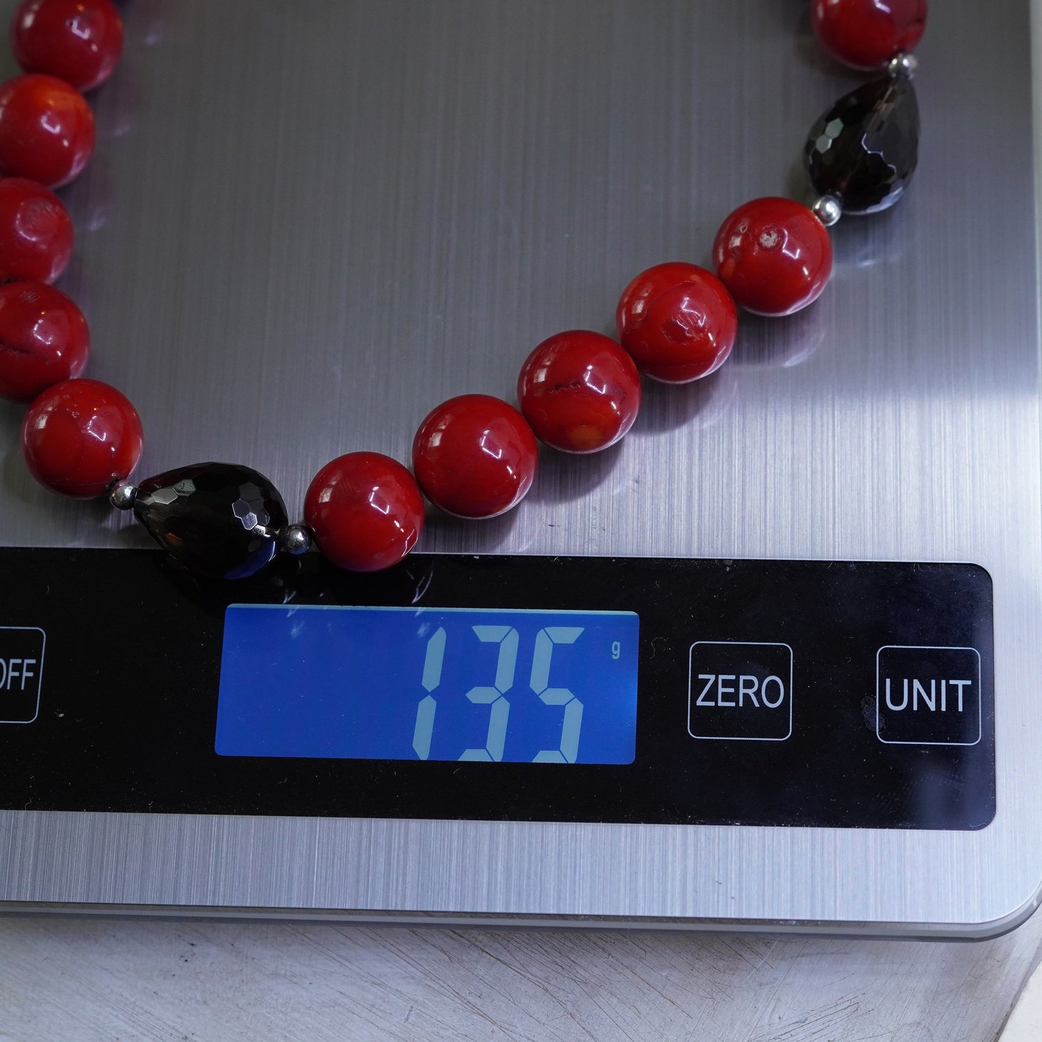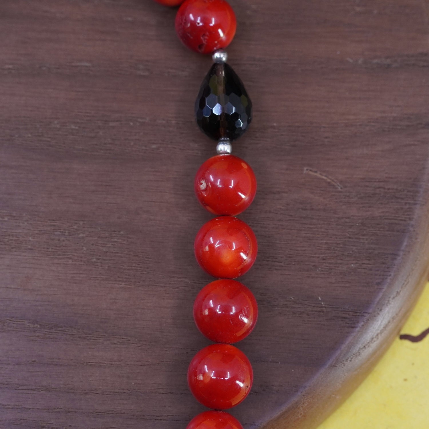 18”, huge coral beads necklace with smoky quartz and sterling 925 silver