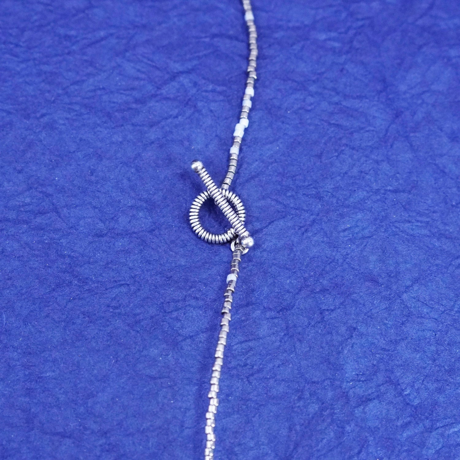 18", Native American jewelry, Sterling 925 silver heishi bead chain with jade leaf pendant, silver tested