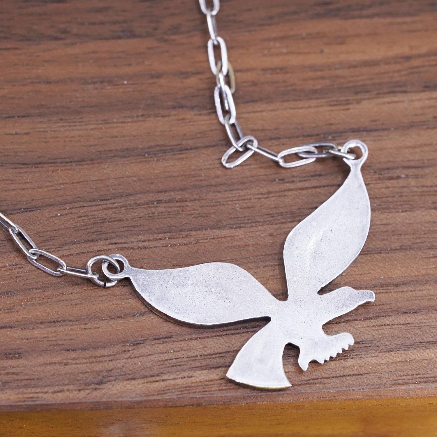 18" Native American Sterling 925 silver elongated chain necklace eagle pendant