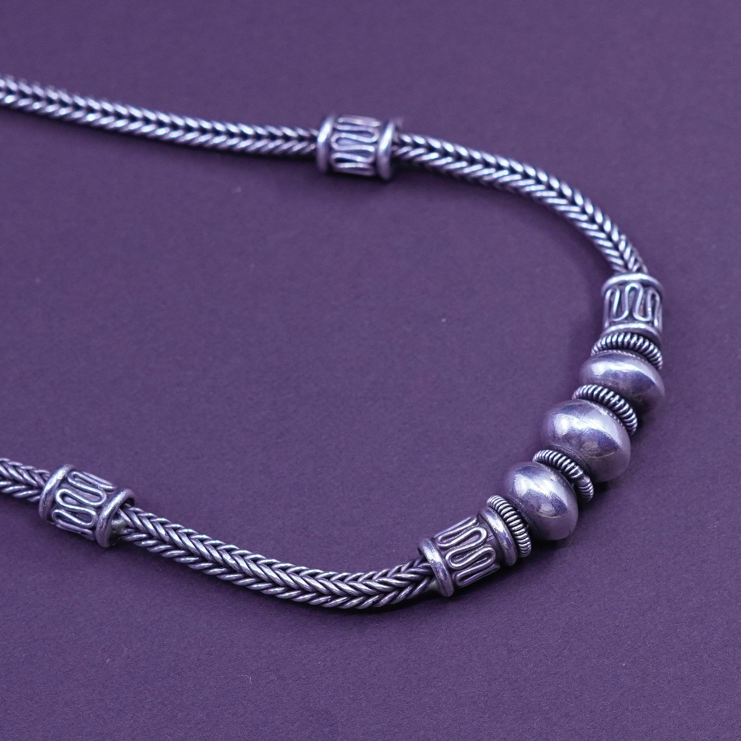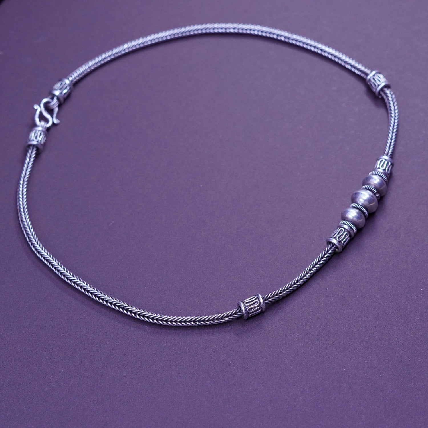 18", 4mm, vintage Sterling silver handmade Birdcage wheat chain, 925 men's necklace with beads, stamped 925