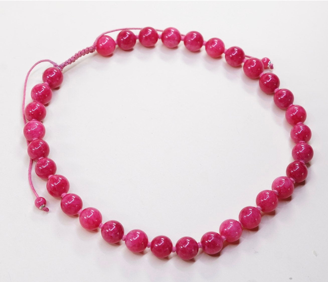 18", Vintage handmade pink quartz beads with linen thread necklace