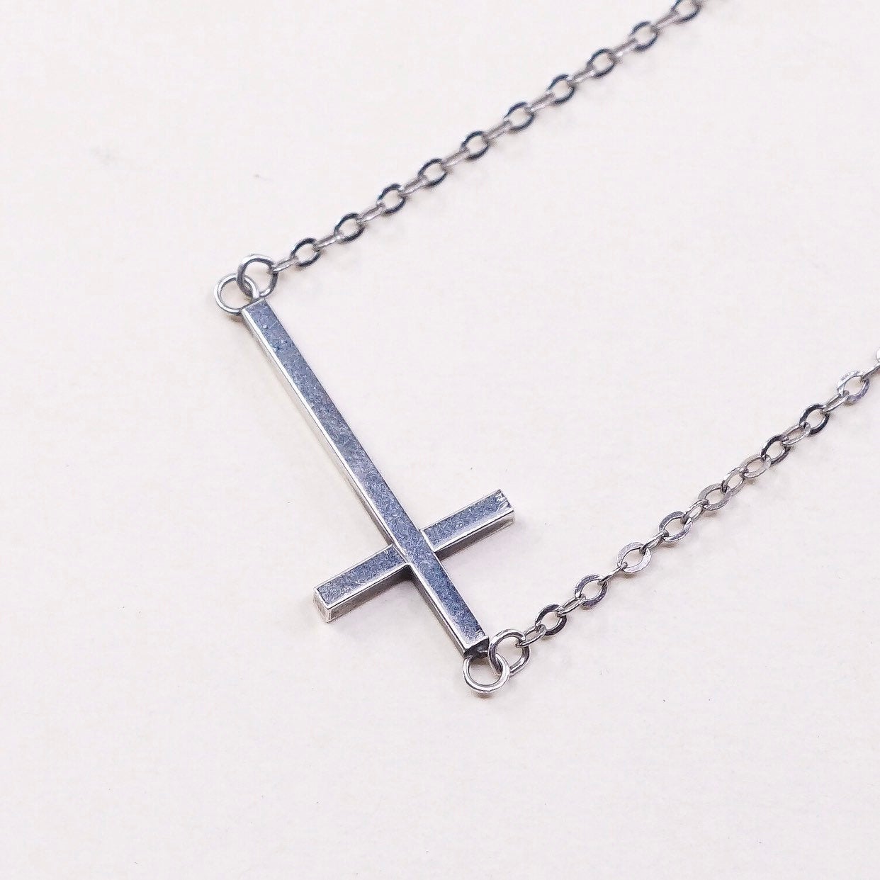 18", 1mm, Vintage (040039) sterling silver flatten circle link chain with cross pendant, necklace, stamped 925
