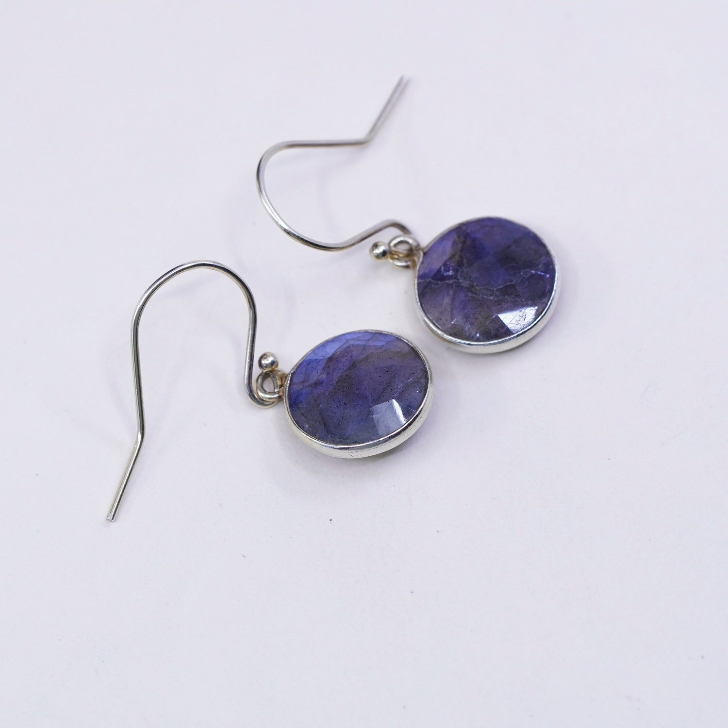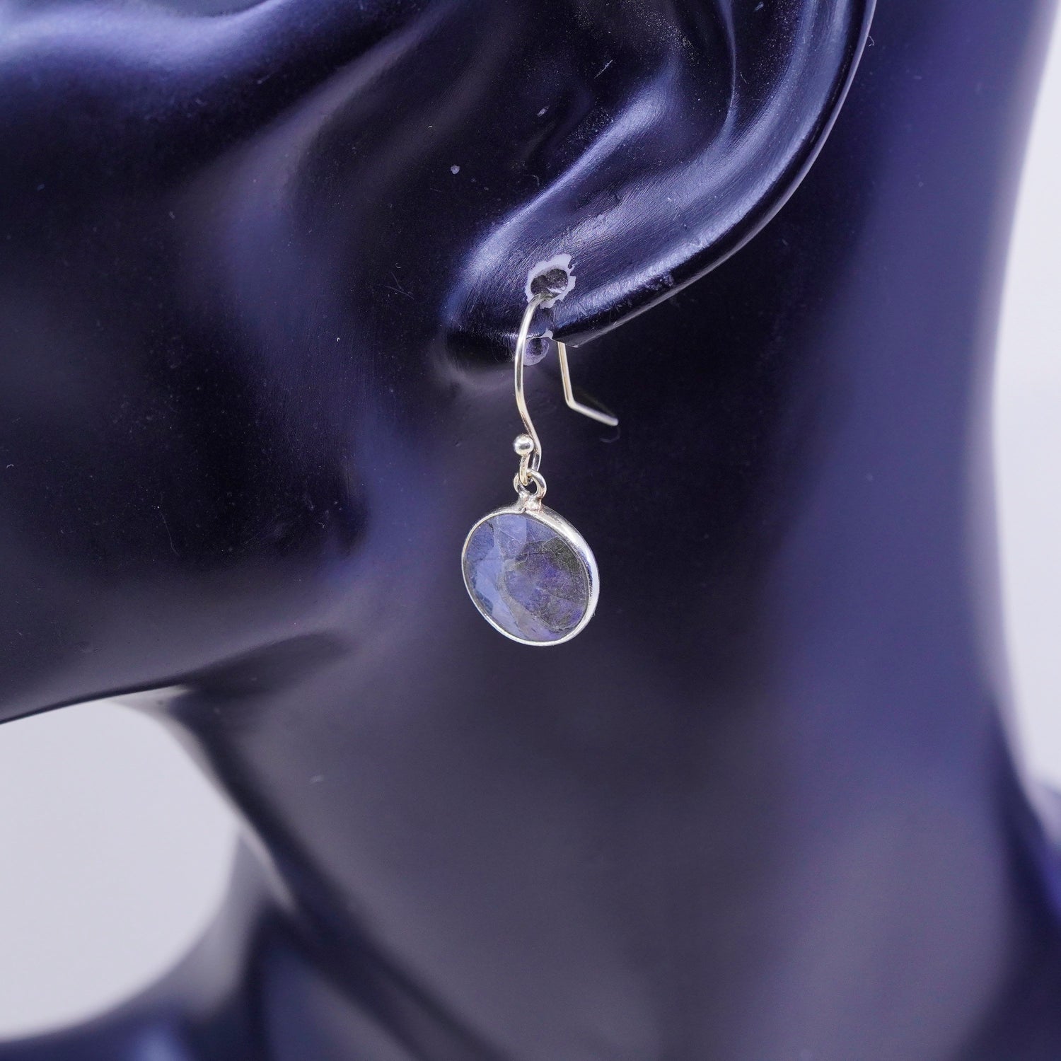 2.8g, Vintage real 14K gold hoops earrings, solid yellow gold hooks with labradorite. Stamped 14K