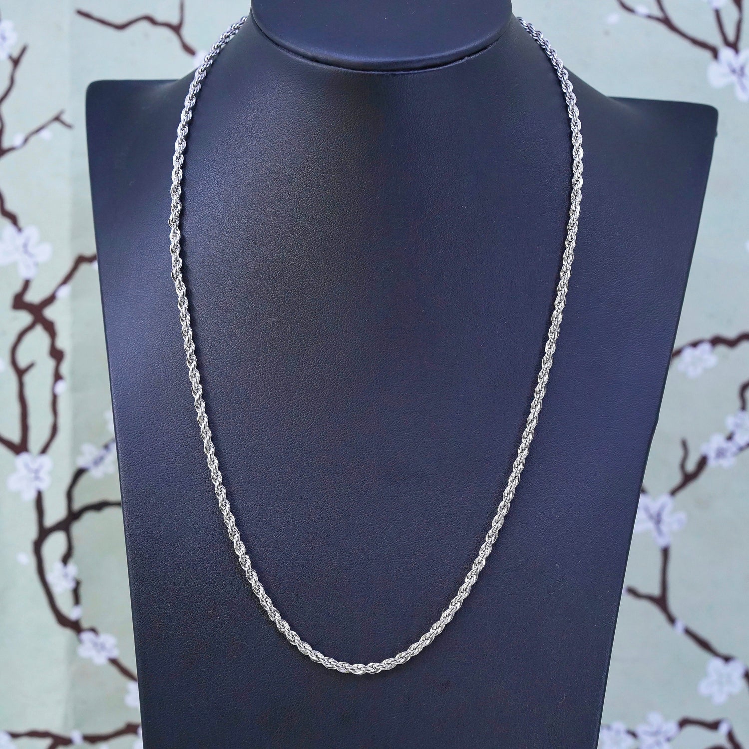 20”, 3mm, vintage Sterling silver necklace, 925 rope chain