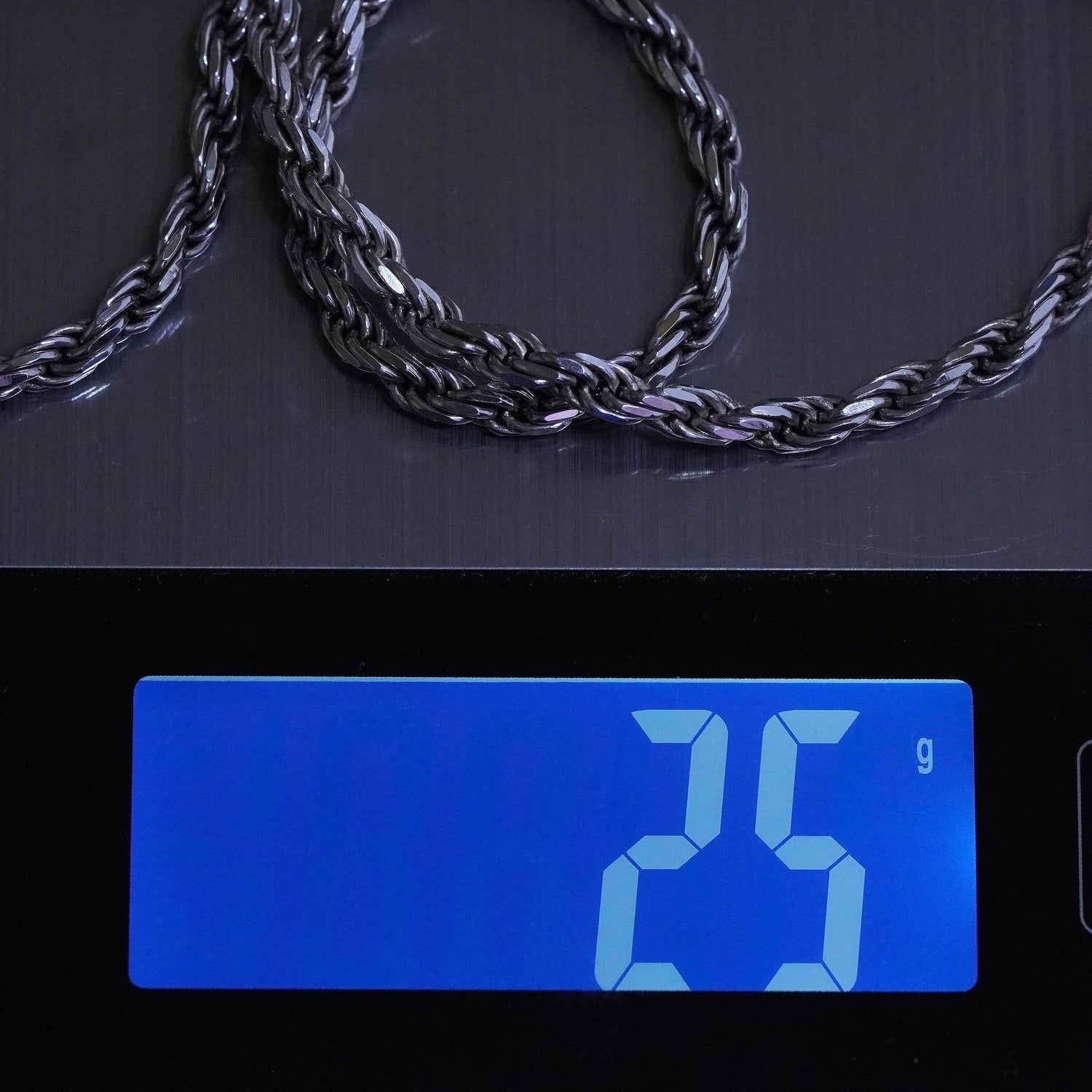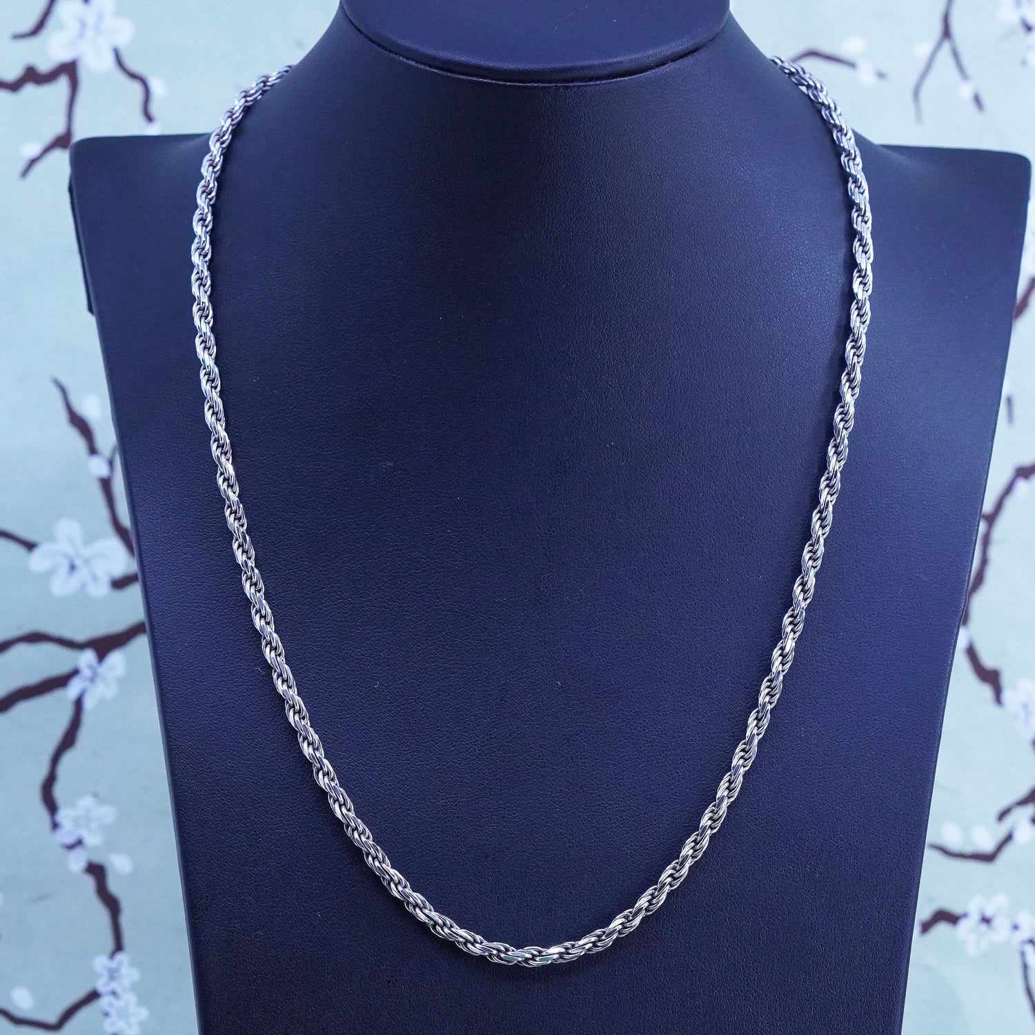20”, 4mm, vintage Sterling silver necklace, 925 diamond rope chain