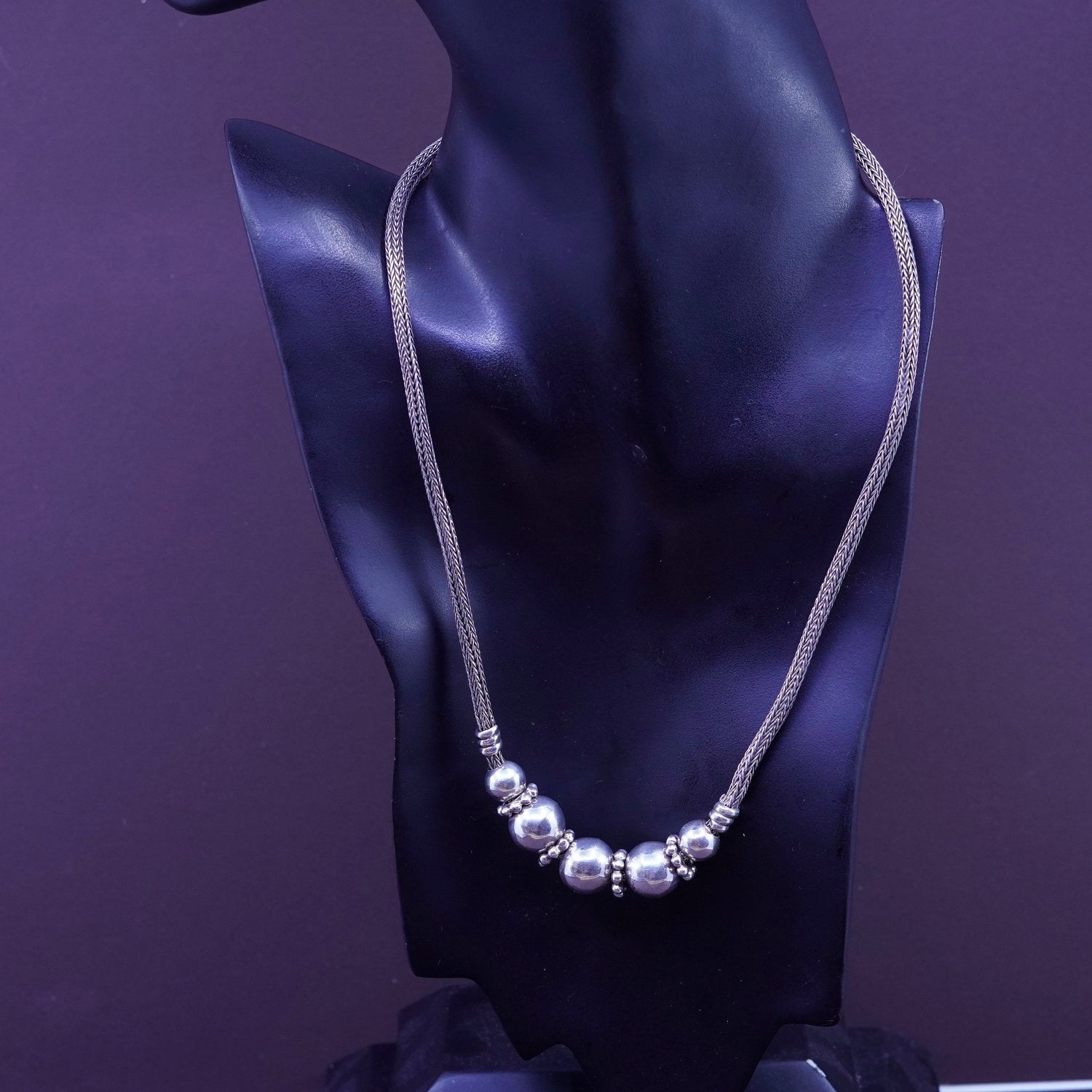 20", 5mm, vintage Sterling silver handmade Birdcage wheat chain, 925 men's necklace with beads, stamped 925