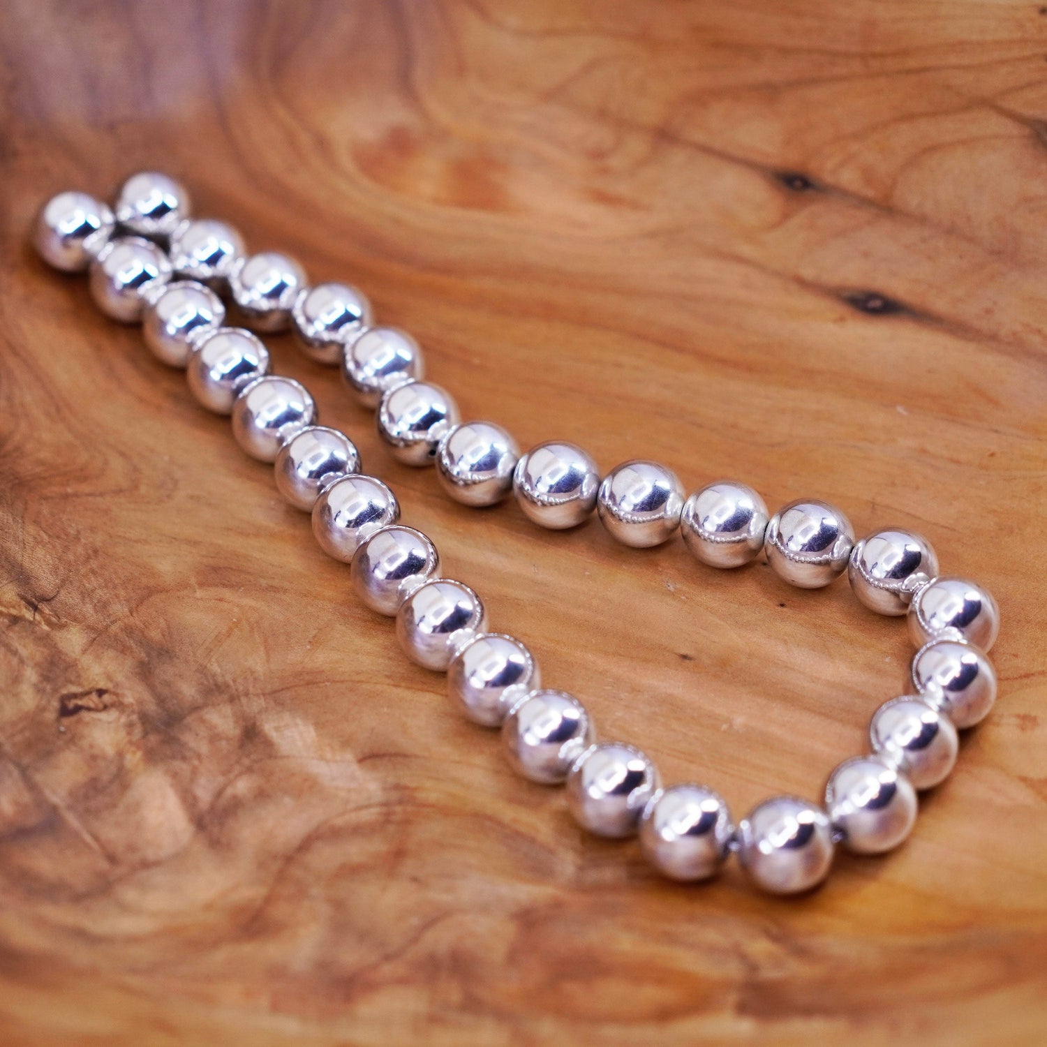 22" 15mm, vintage Sterling silver handmade necklace, huge 925 beads chain, stamped 925
