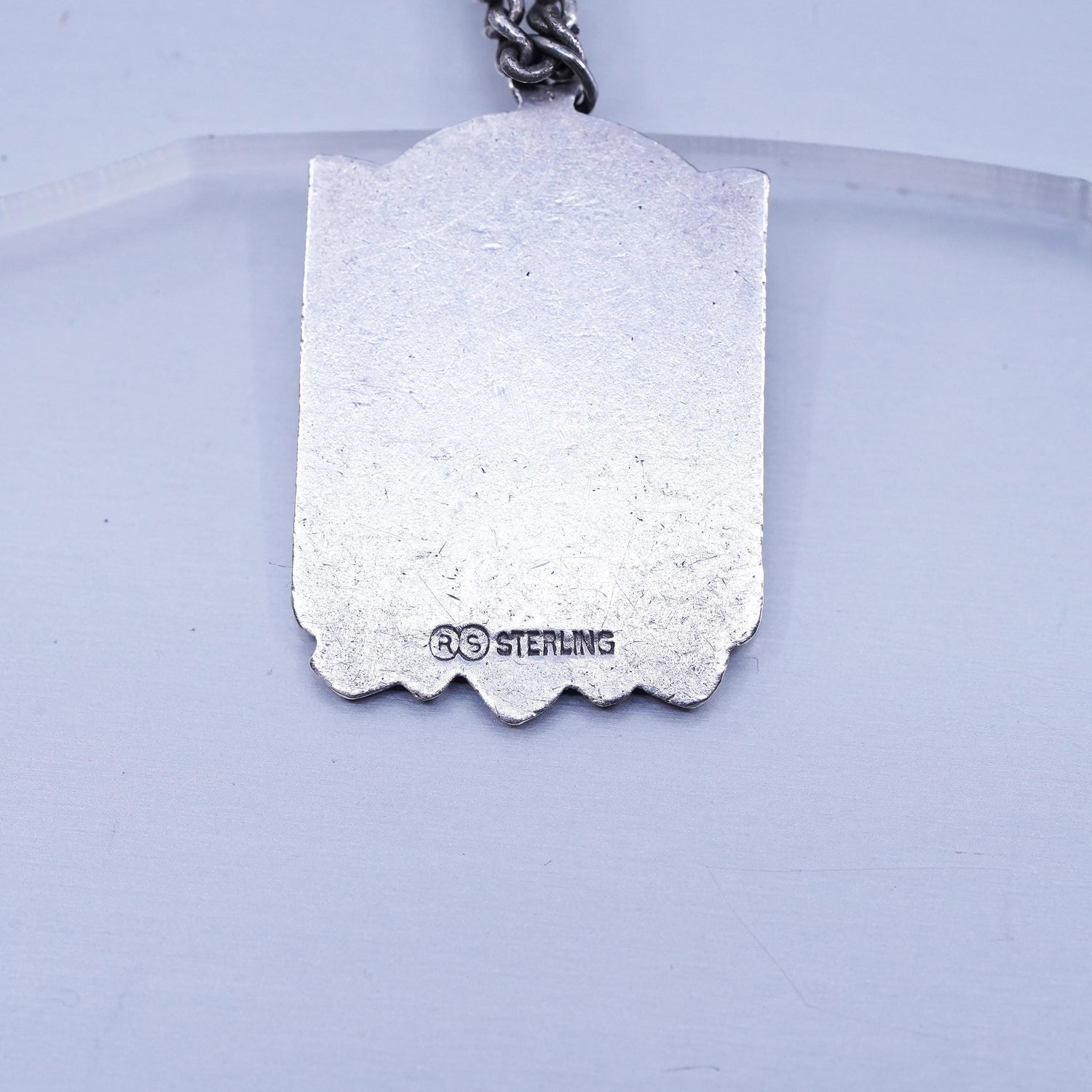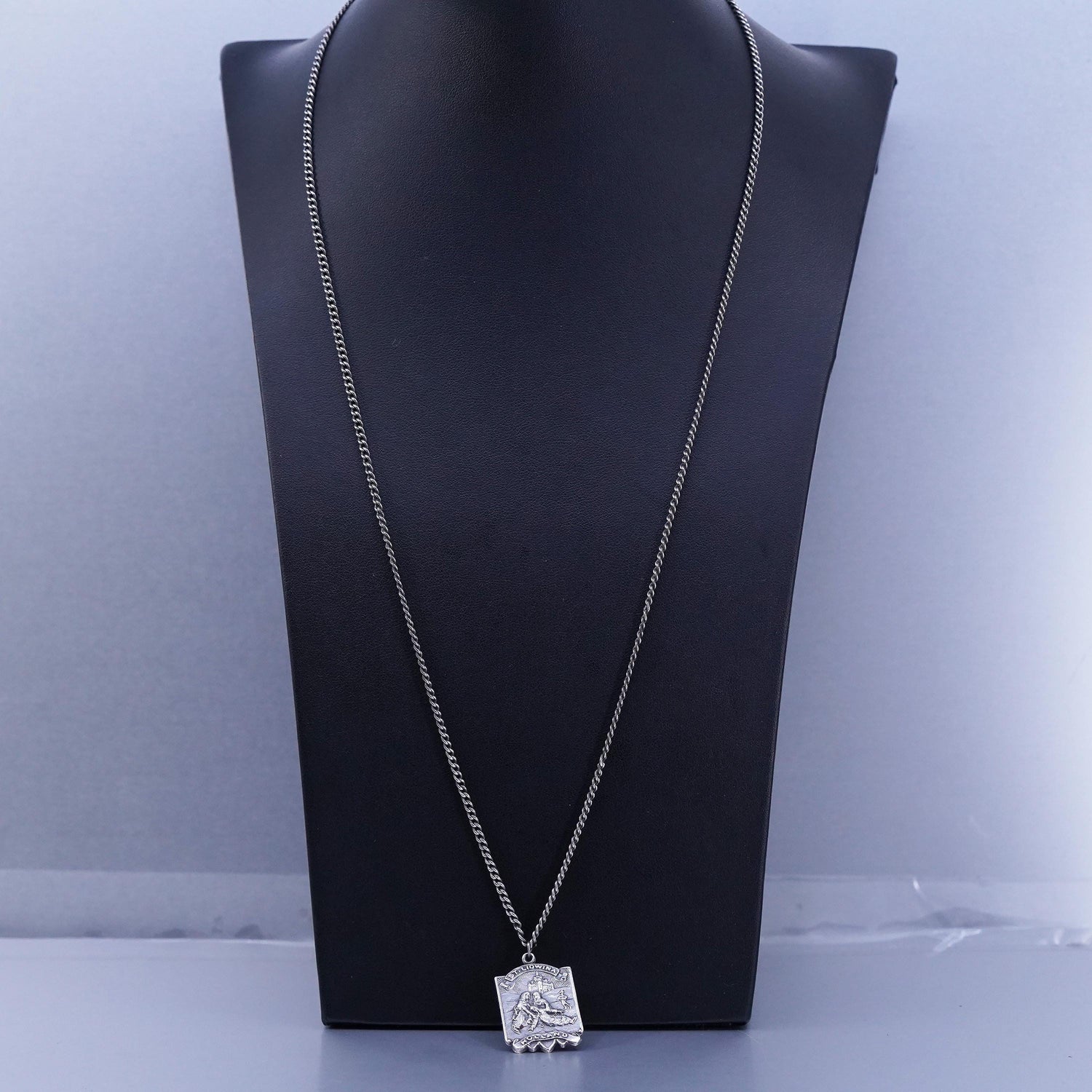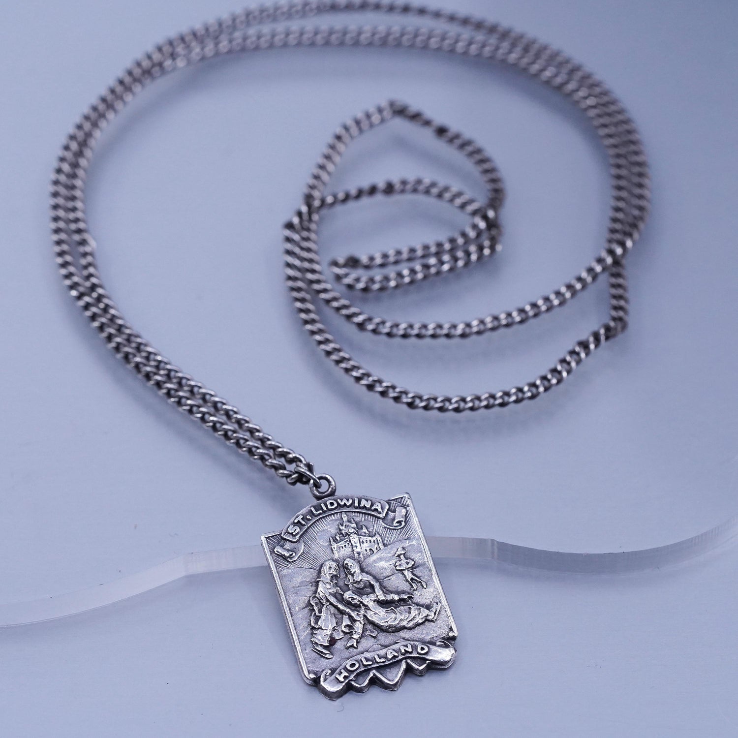 24”, VTG Sterling 925 silver curb necklace with St Lidwina Holland tag pendant