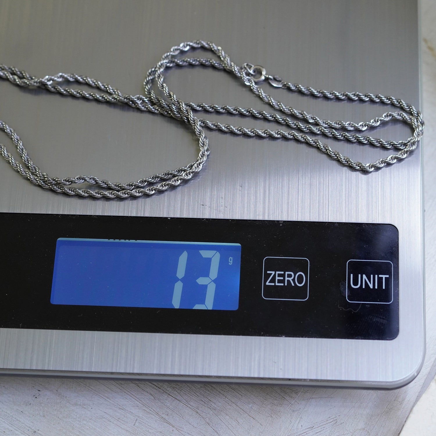 30” 3mm, vintage Sterling silver necklace, Italy 925 rope chain