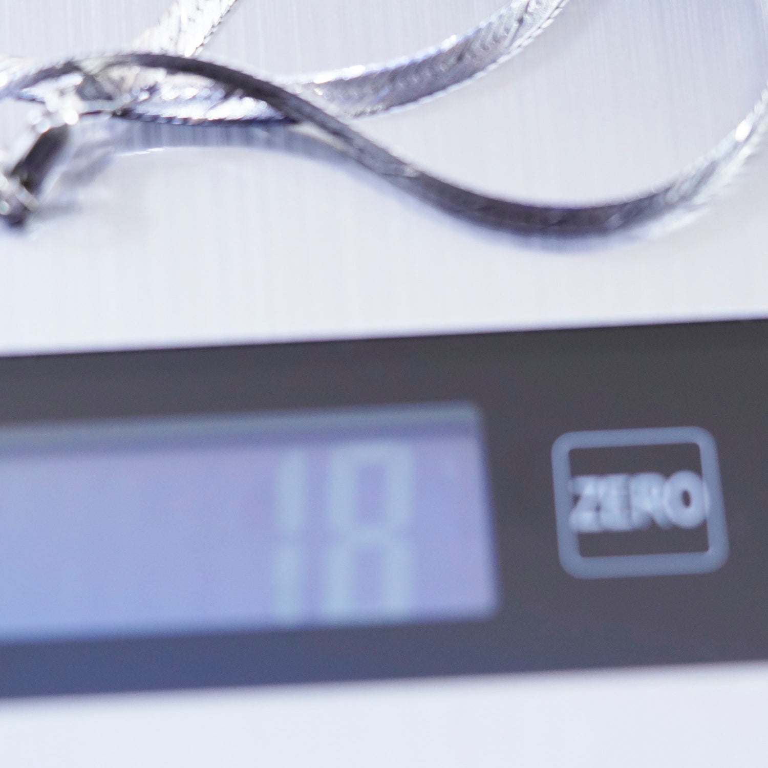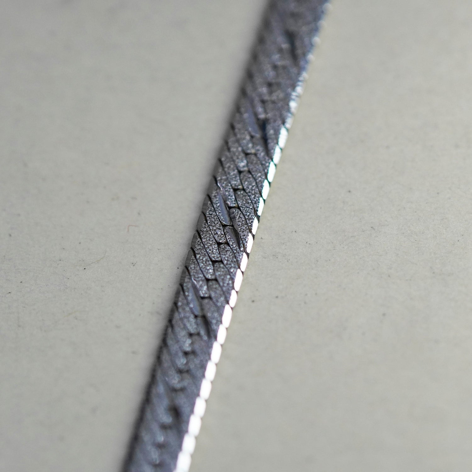 30" 4mm, Vintage Italy sterling silver necklace, textured 925 herringbone chain, stamped 925 Italy