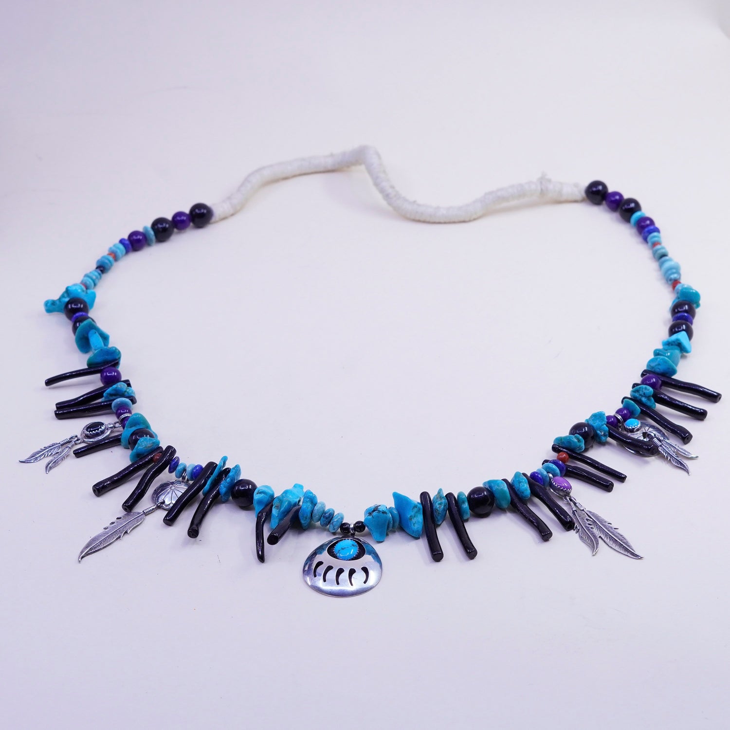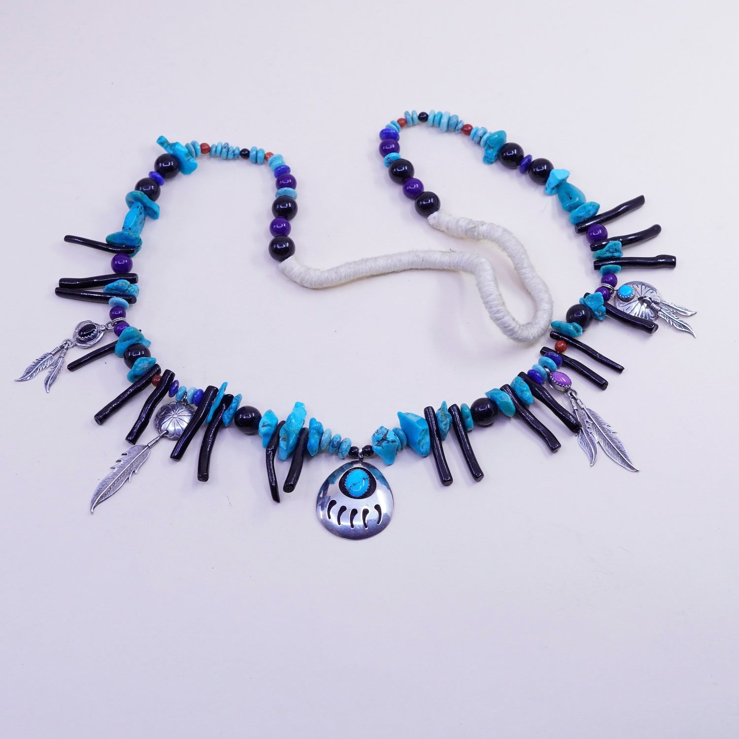 30”, Native American Richard Begay Sterling silver turquoise necklace Navajo