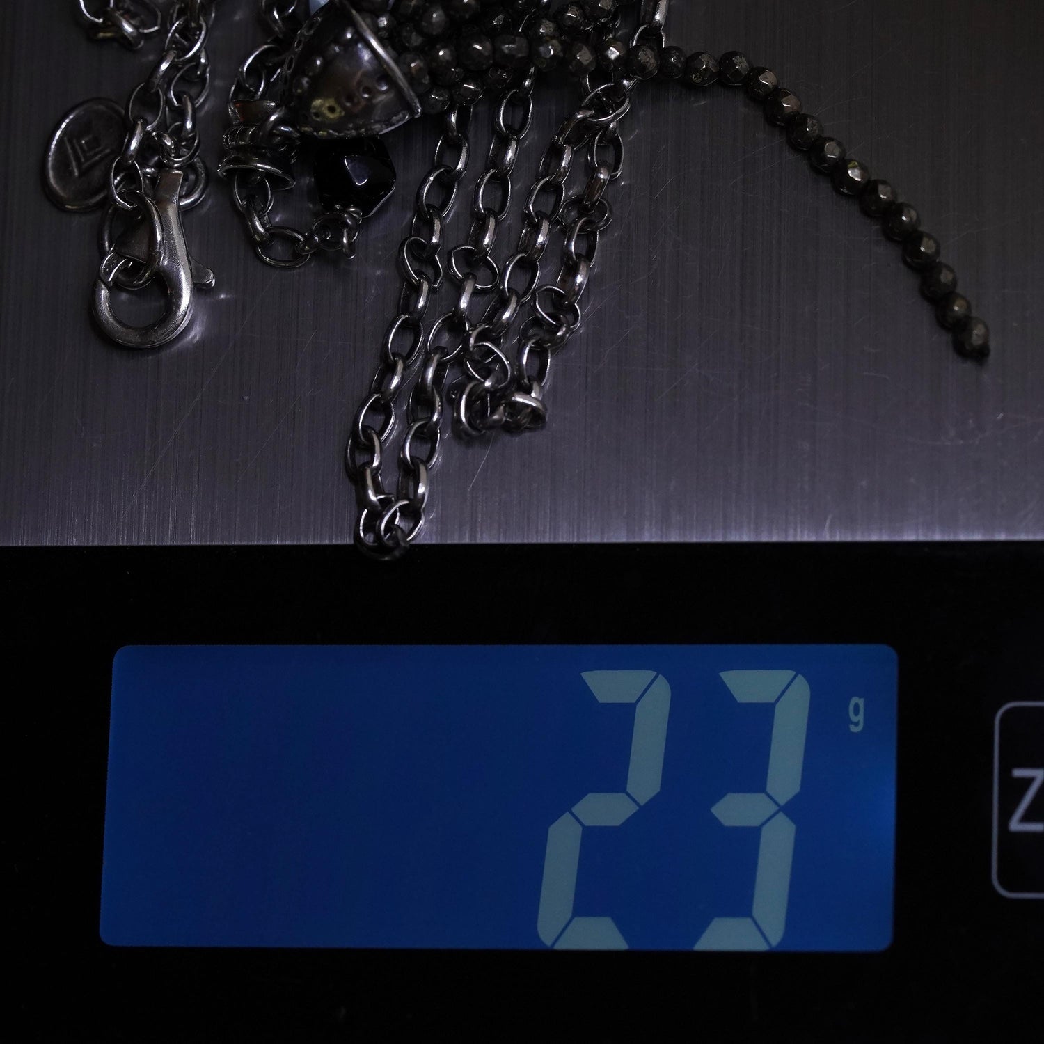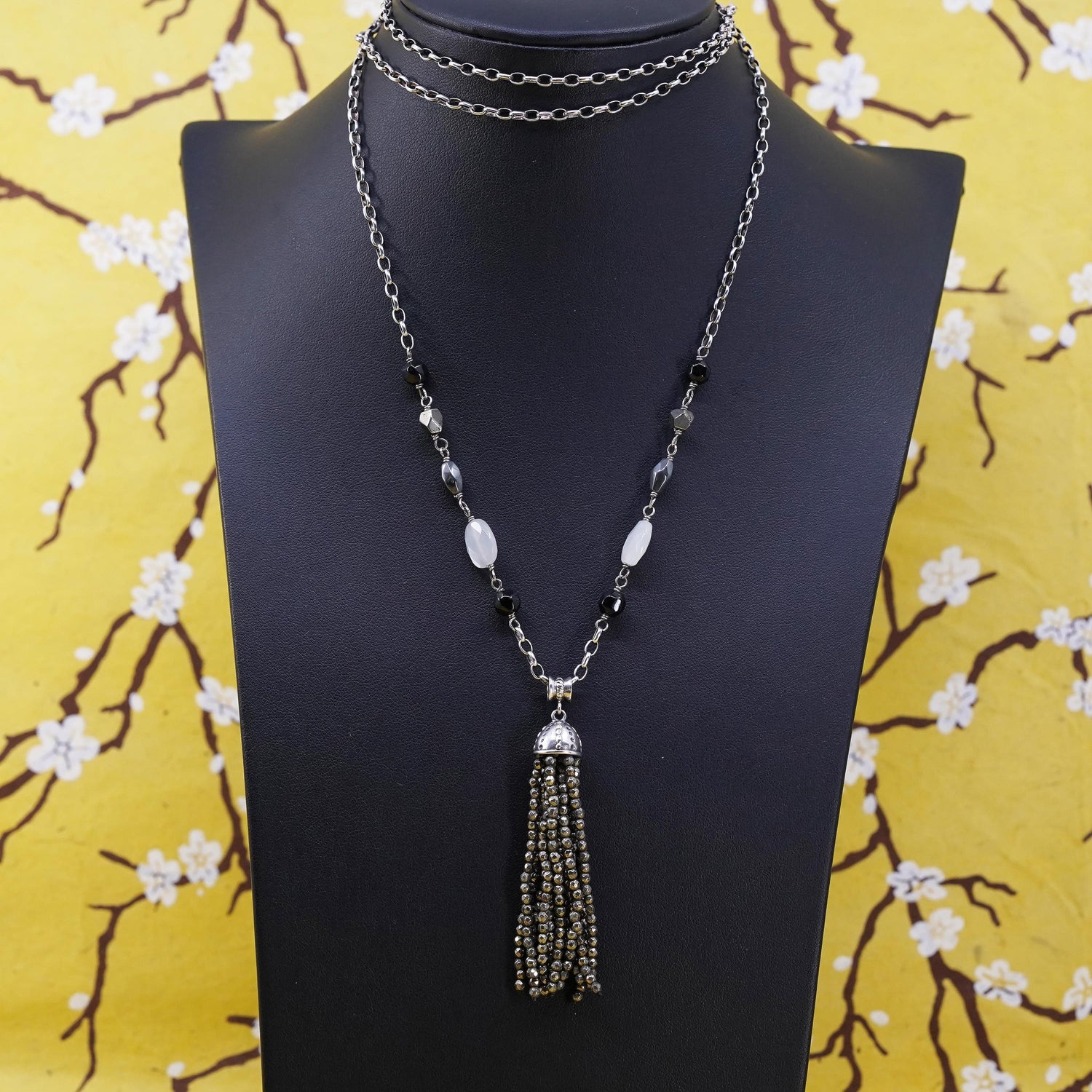30", Vintage Silpada Sterling Silver 925 extra long oval chain necklace with hematite bead frindge pendant, stamped 925