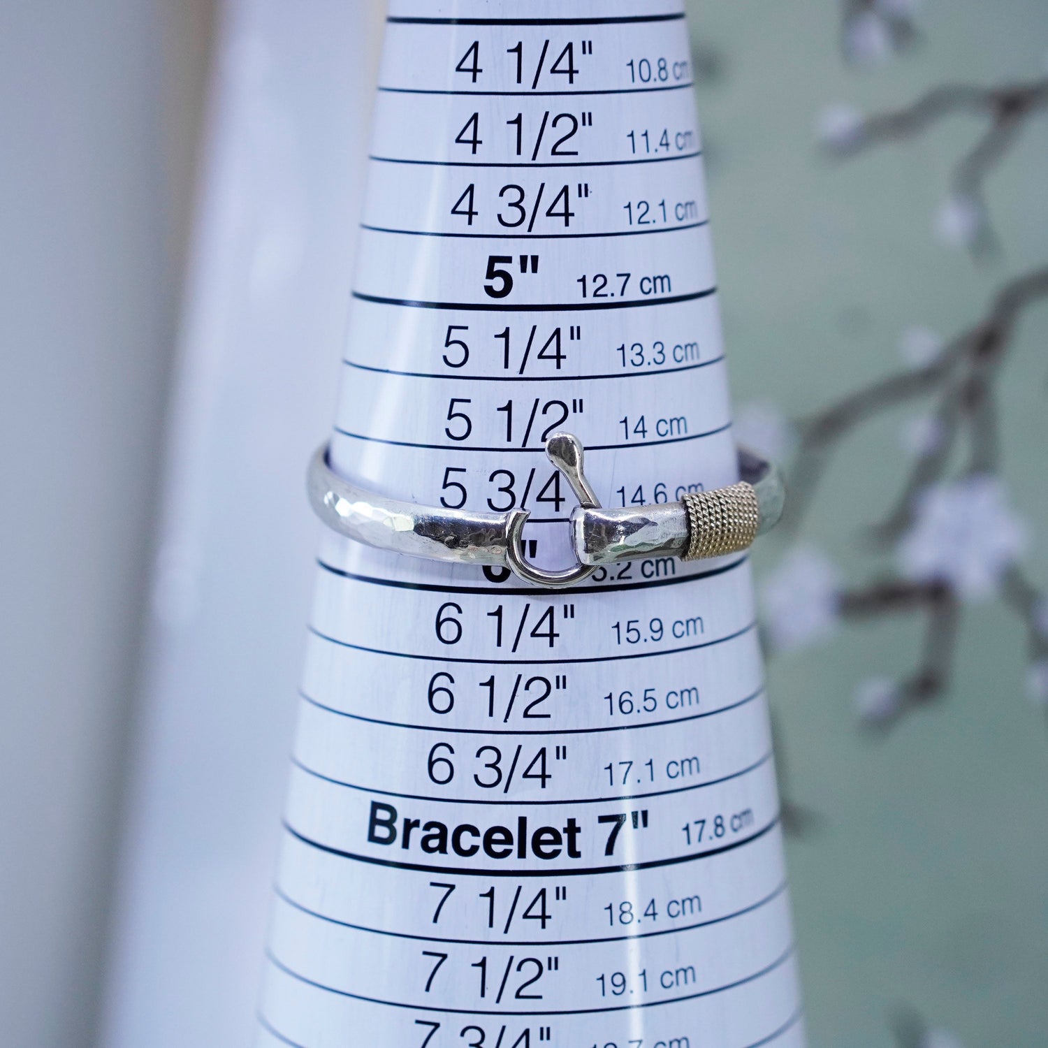 6", vintage 14K gold wired Sterling 925 silver handmade bracelet, two tone horseshoe bangle, stamped 925 14K 65